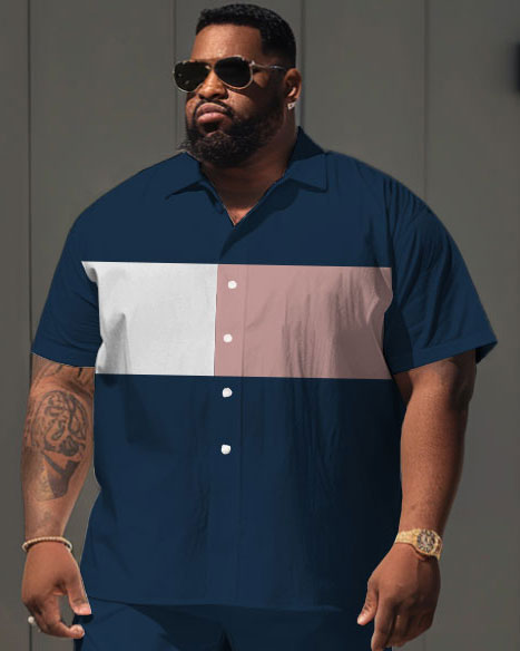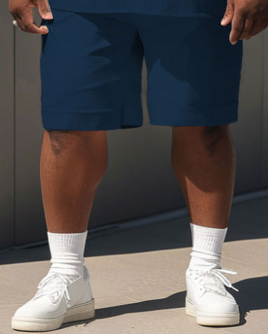 Men's Plus Size Simple Casual Color Matching Printed Shirt Shorts Suit