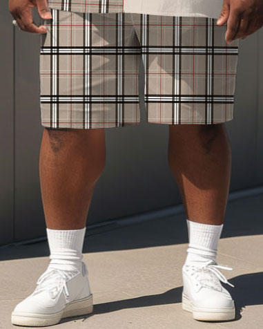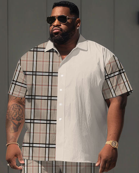 Men's Plus Size Simple Casual Plaid Colorblock Printed Shirt Shorts Suit