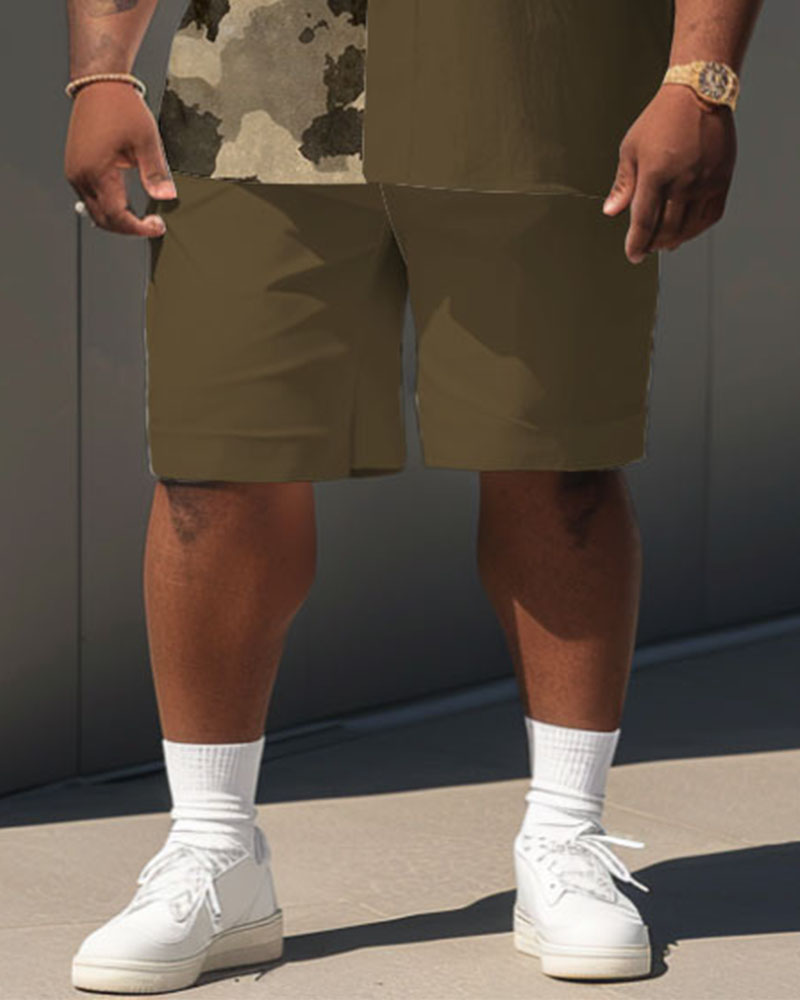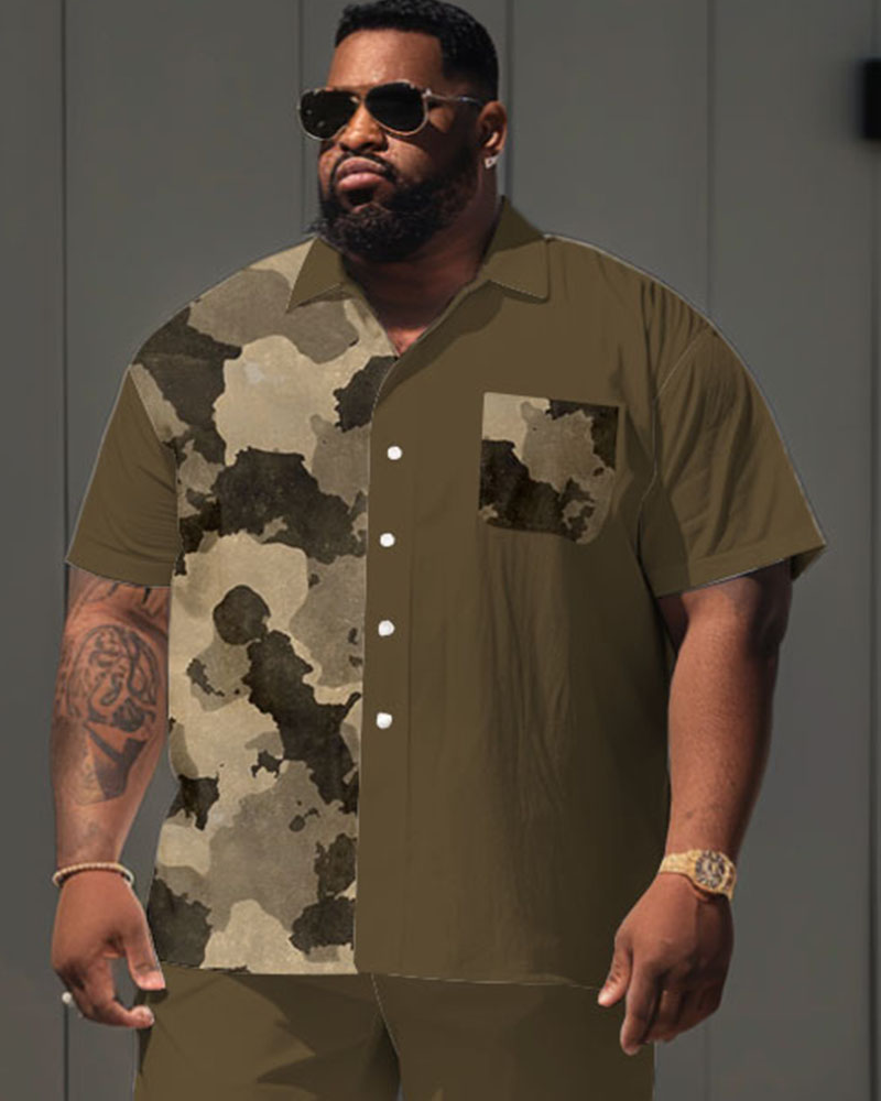 Men's Plus Size Simple Casual Retro Camouflage Colorblock Printed Pocket Shirt Shorts Suit