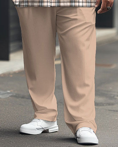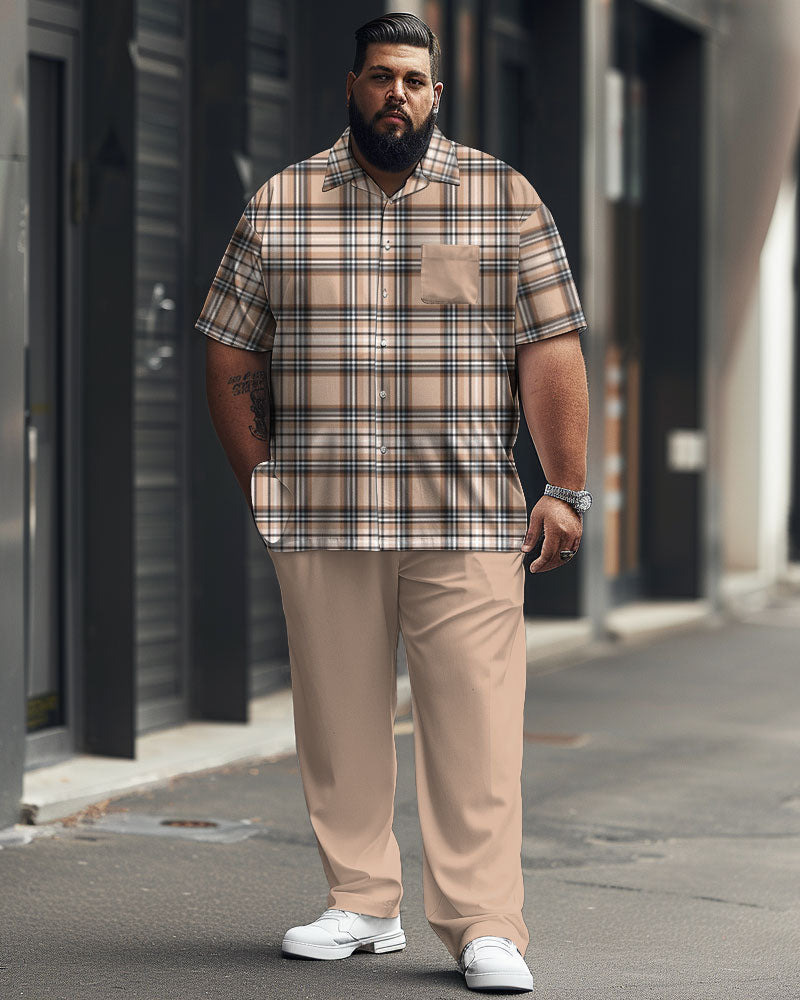 Men's Plus Size Simple Check Print Short-sleeved Shirt Suit