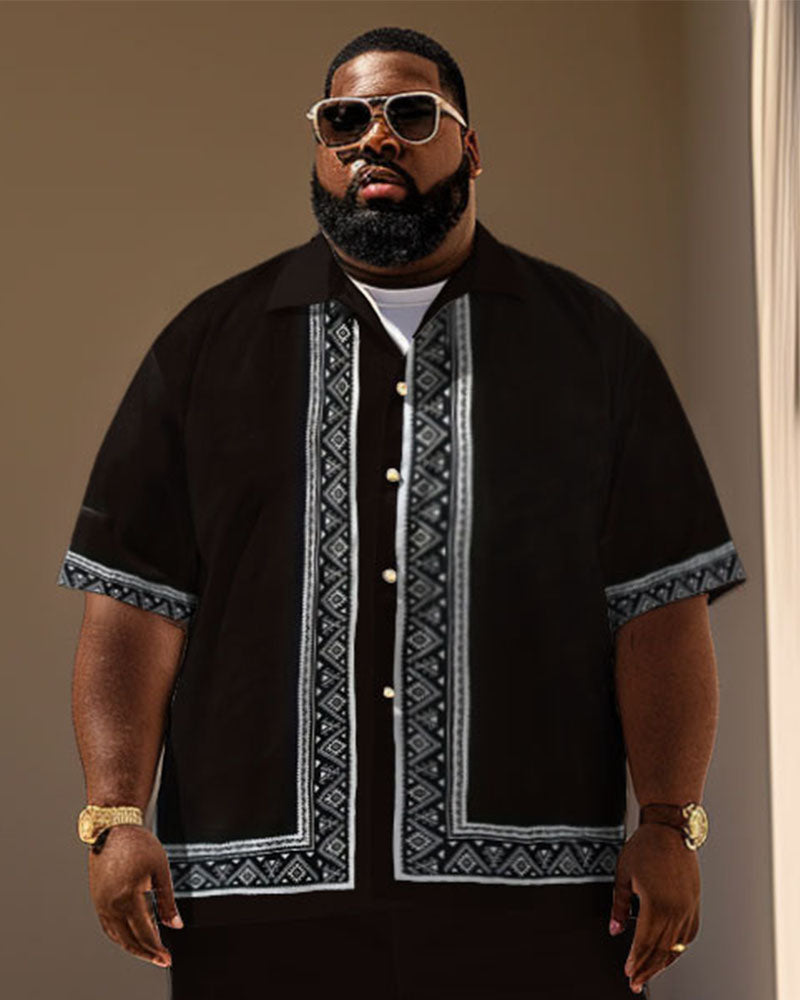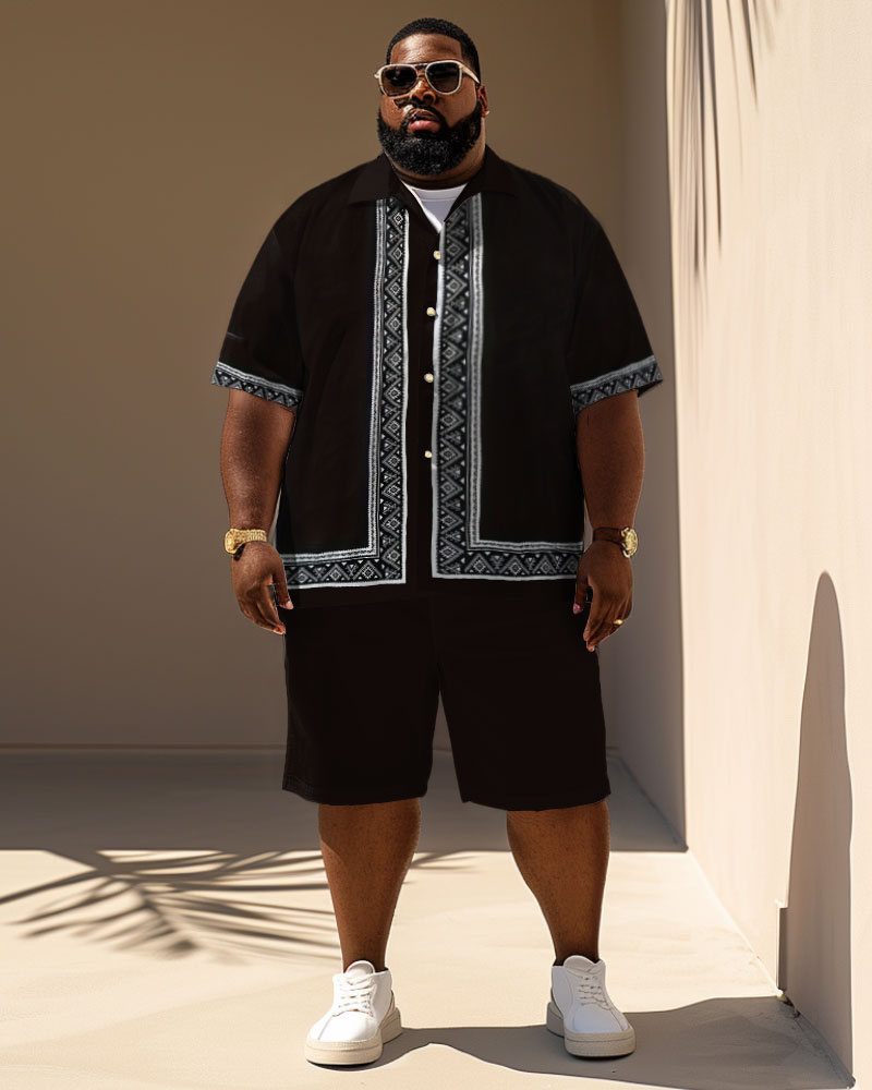Men's Plus Size Simple Classical Pattern Printing Short Sleeve Shirt Shorts Suit