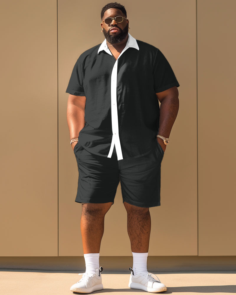 Men's Plus Size Simple Contrast Short-sleeved Shirt And Shorts Set