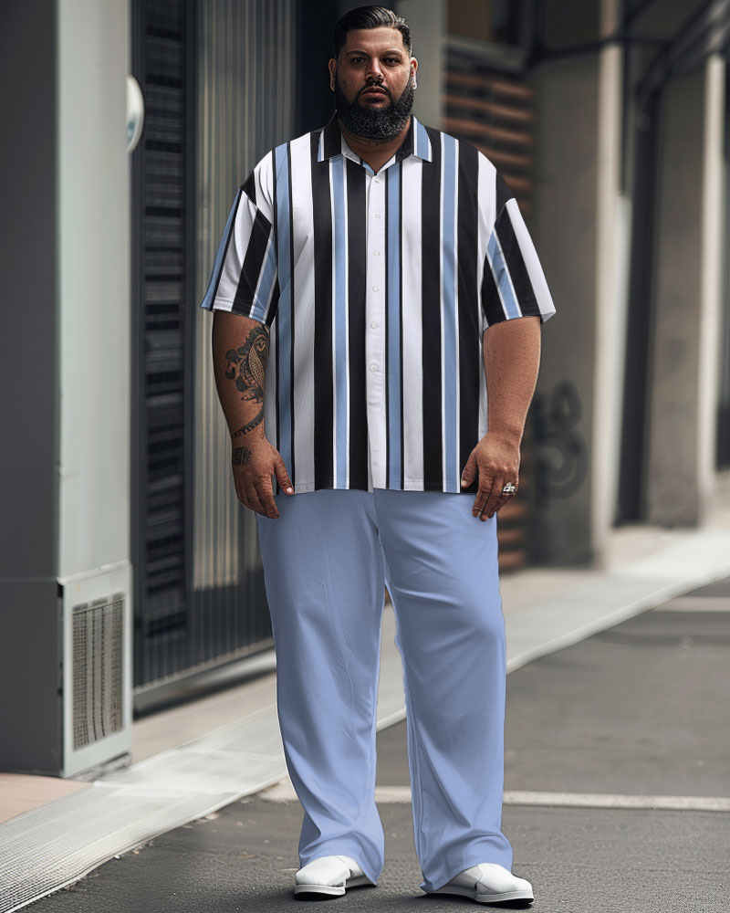 Men's Plus Size Simple Contrast Stripe Print Short Sleeve Shirt Suit