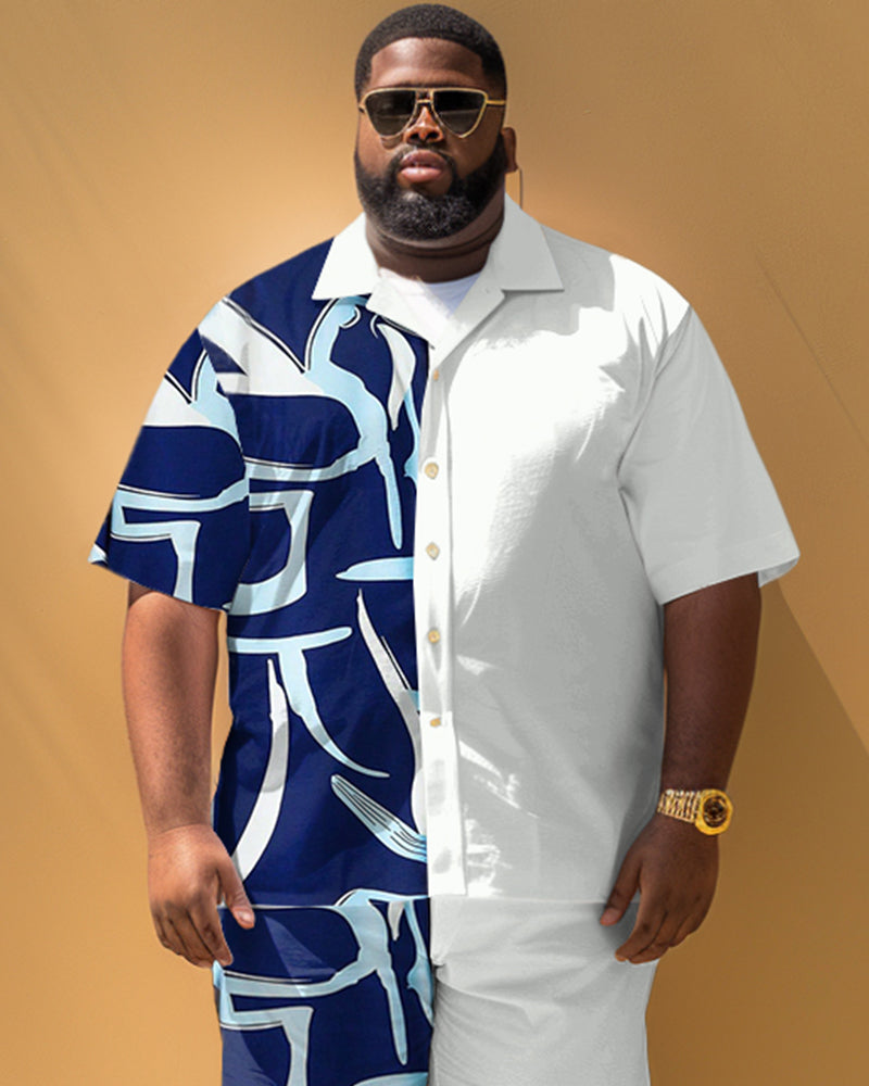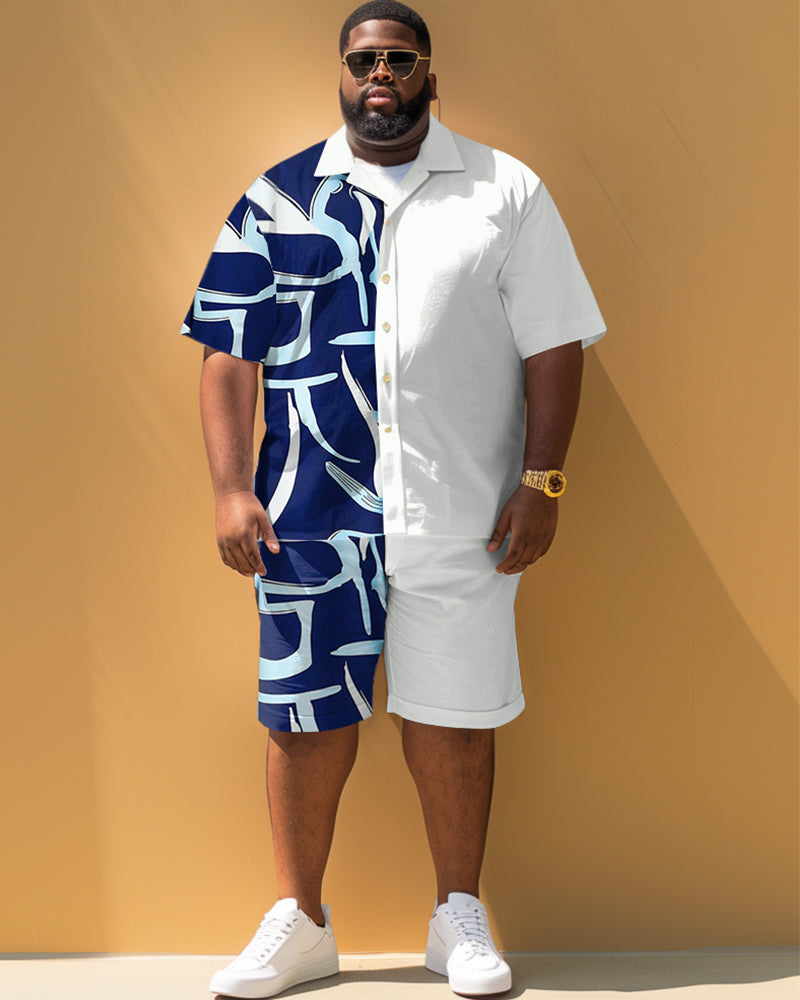 Men's Plus Size Simple Geometric Contrast Short Sleeve Shirt And Shorts Set