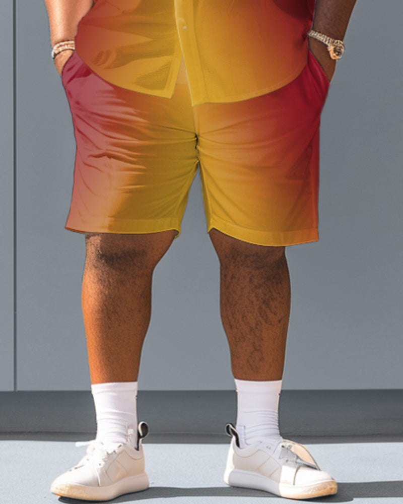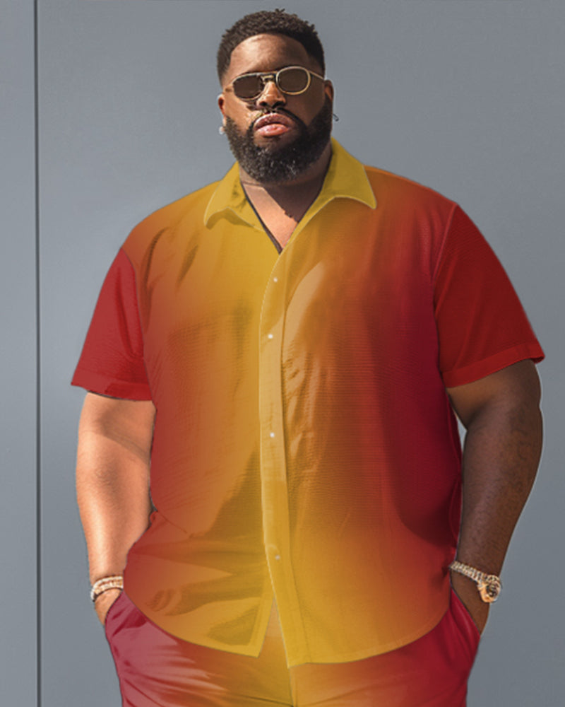 Men's Plus Size Simple Gradient Contrast Short Sleeve Shirt Shorts Suit