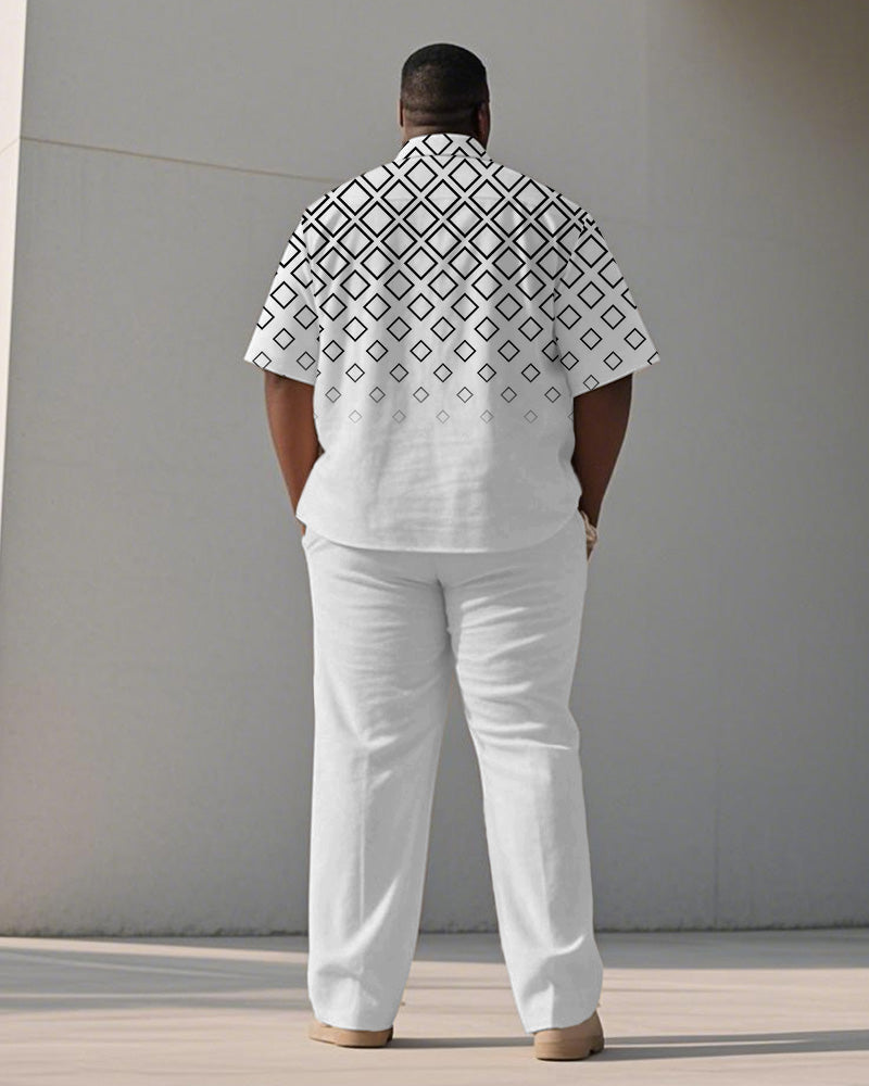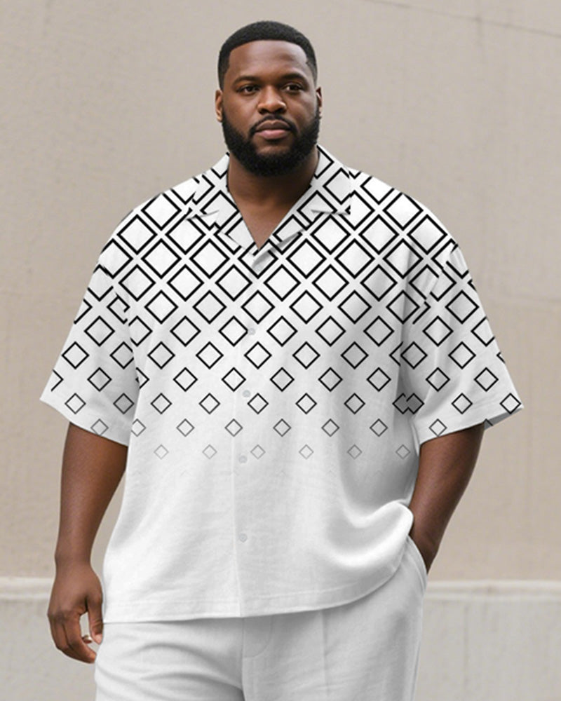 Men's Plus Size Simple Gradient Diamond Print Short Sleeve Shirt Trousers Suit