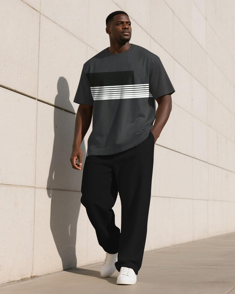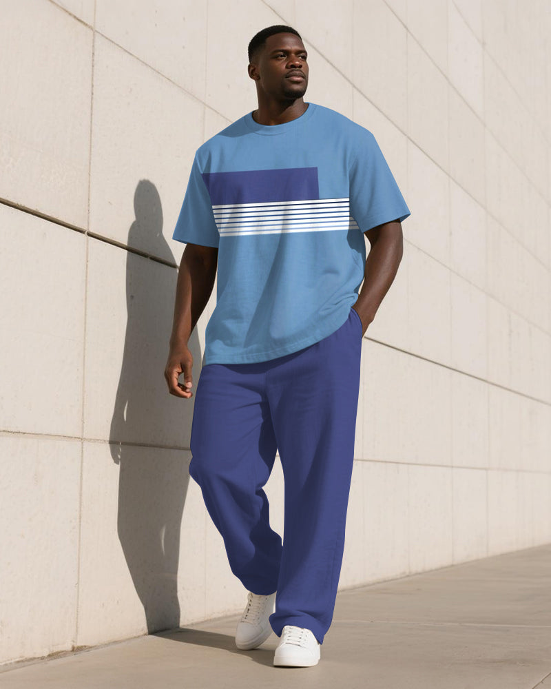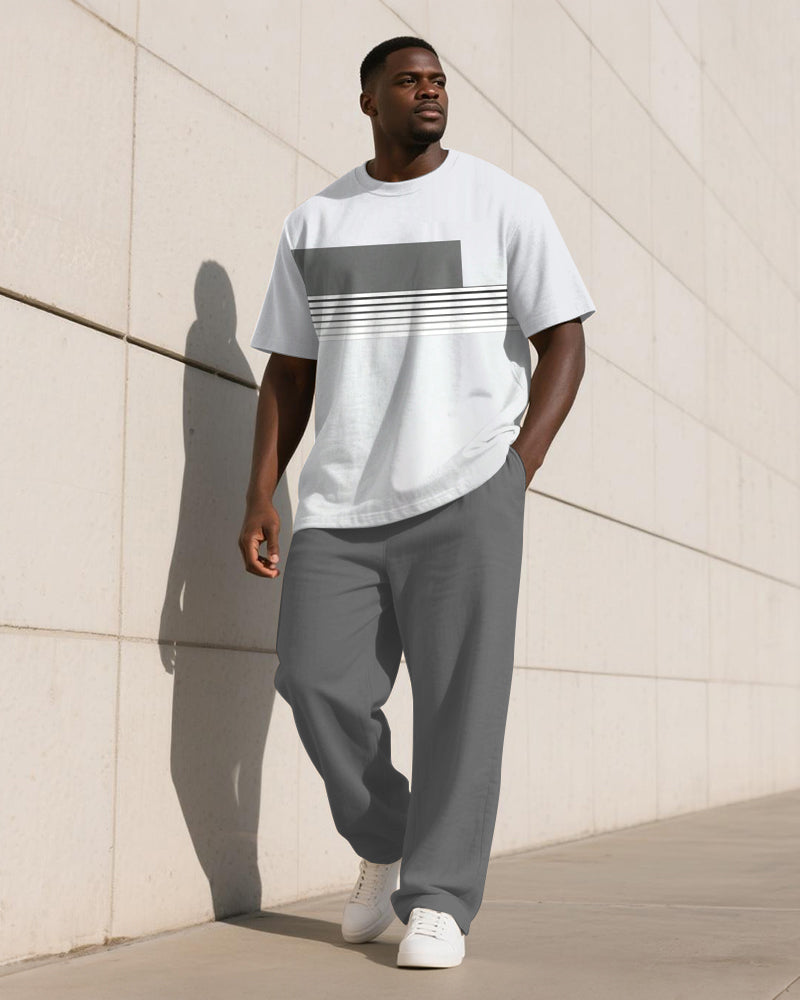 Men's Plus Size Simple Gradient Stripe Colorblock Print T-shirt Trousers Suit