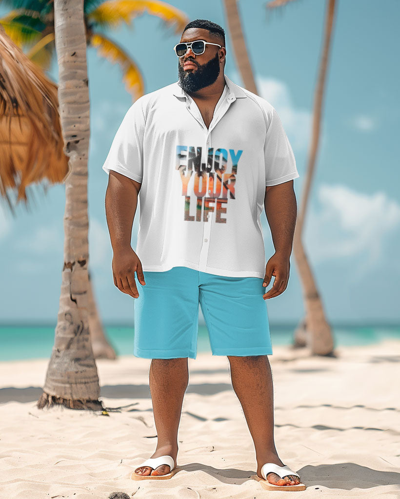 Men's Plus Size Simple Hawaiian Alphabet Print Shirt Shorts Suit