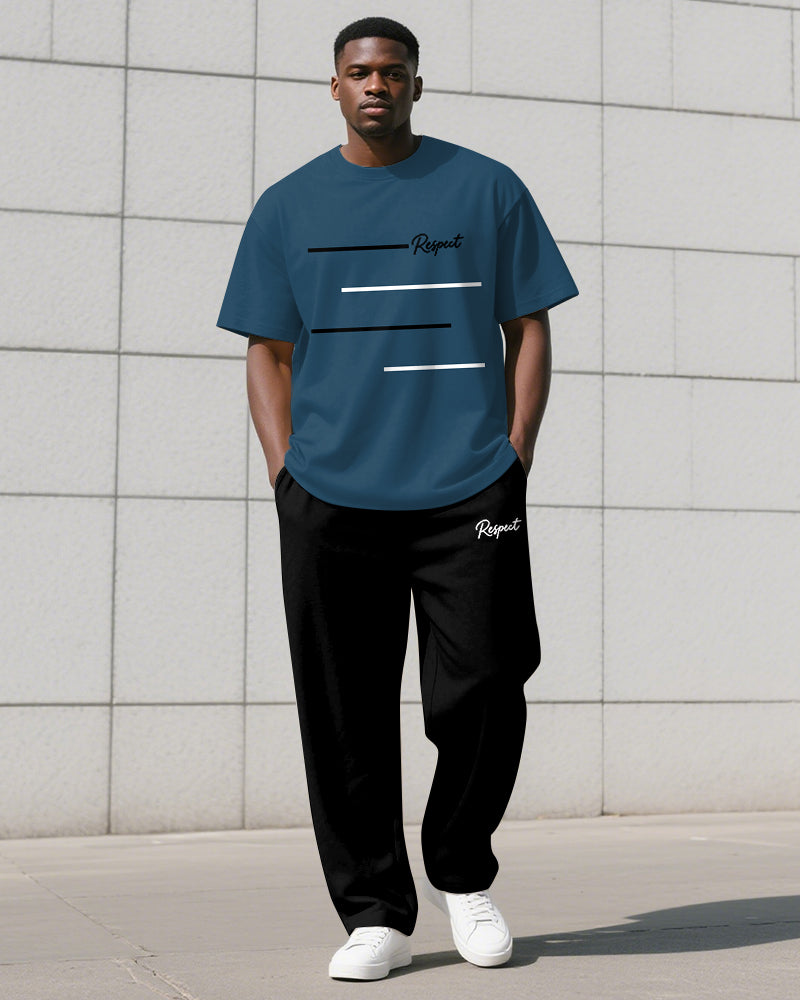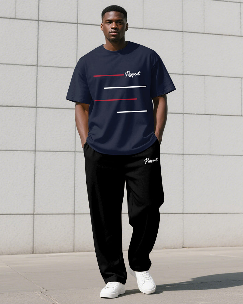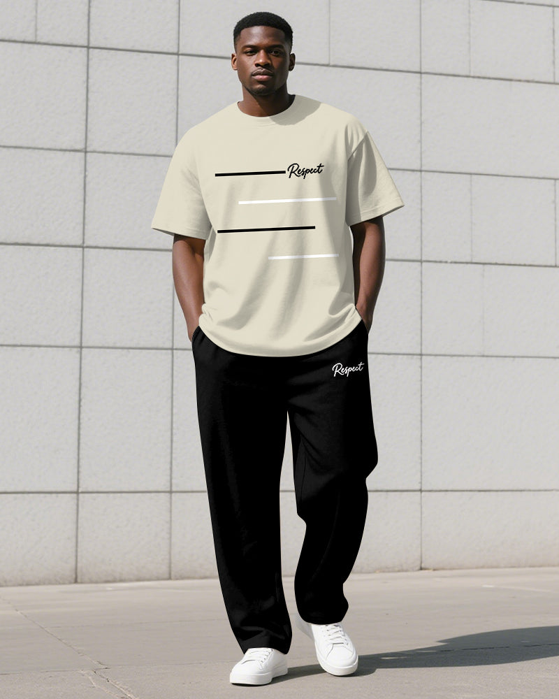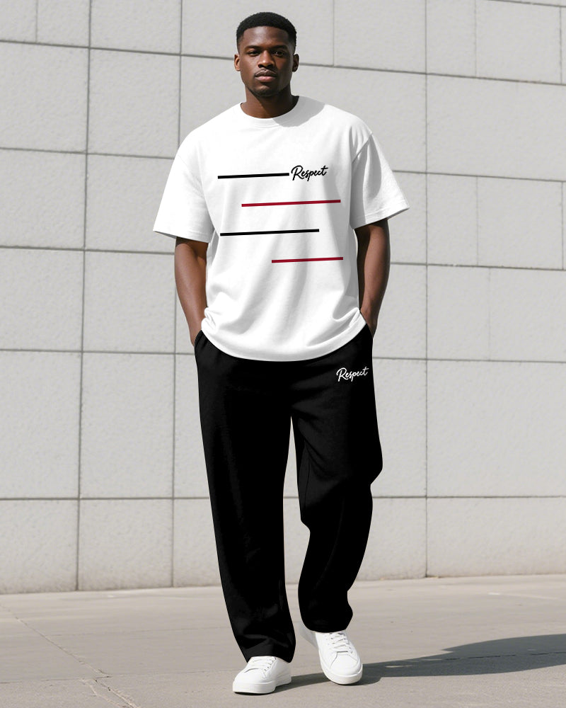 Men's Plus Size Simple Line Color Matching Respect Letter Printed T-shirt Trousers Suit