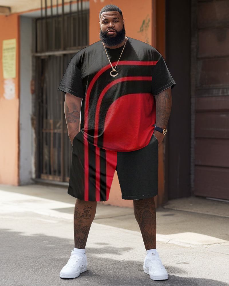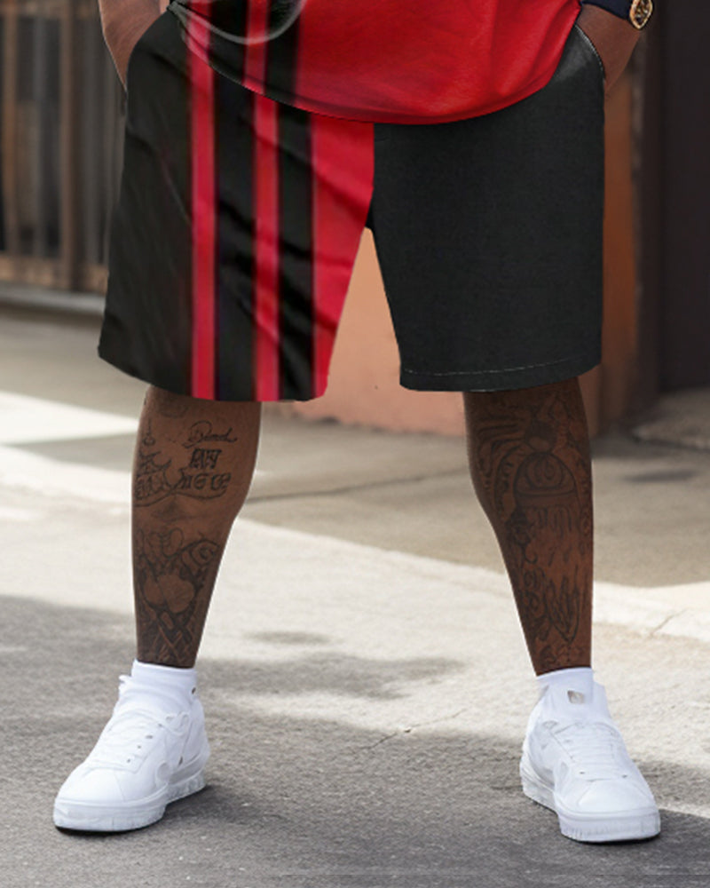 This plus-size set blends sporty and street fashion. The sleek black design is enhanced with vibrant red color blocks and striking red stripes. With its loose fit, this set is perfect for active days. Ideal for casual outings or summer adventures, this ensemble embodies the spirit of streetwear.