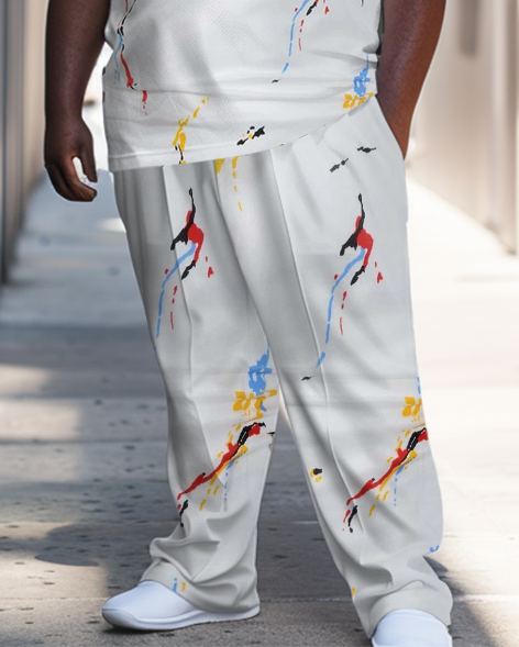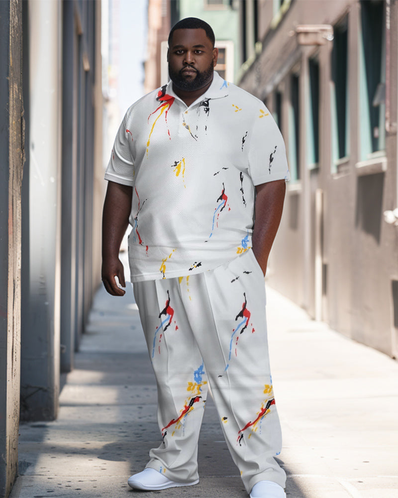 Men's Plus Size Simple Paint Graffiti Polo Shirt Trousers Suit