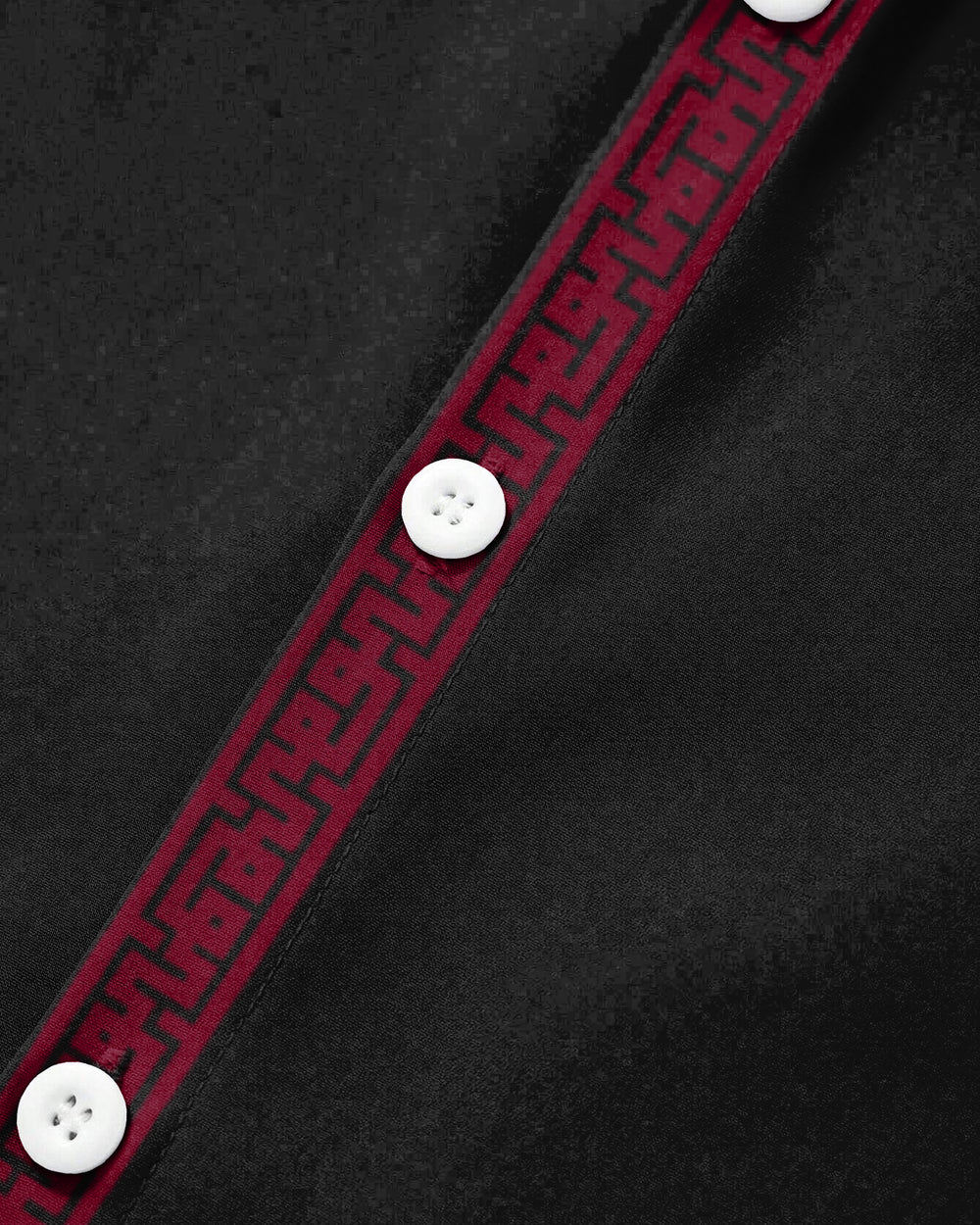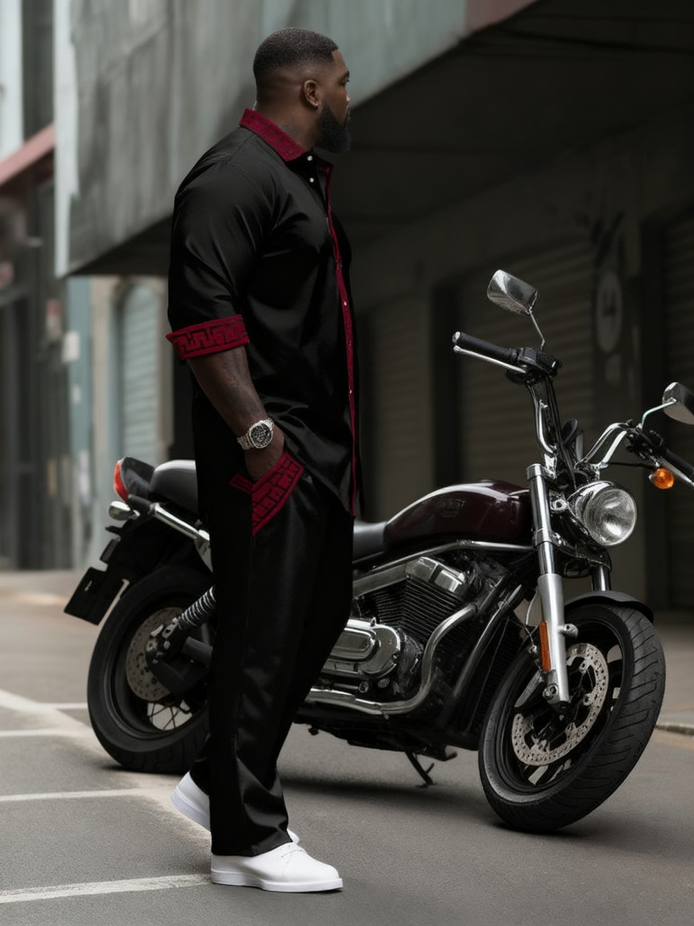 Black style meets red print, your look will have a different appeal. This men's two-piece set is designed in all black. The delicate red pattern on the set makes it more stunning. The fitted cut can modify the body shape. Simple and versatile, it's suitable for various occasions.
