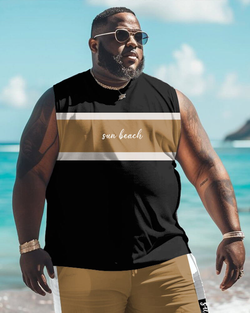 Discover our big and tall guy's vest and shorts set and feel the casual style with the color-block design. Designed with a loose fit, this set seamlessly blends simplicity with comfort, making it a fantastic option for those who appreciate stylish yet practical casual wear.