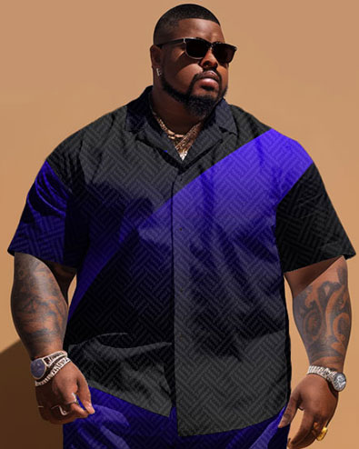 Feel the deep visual contrast in this big guy’s short-sleeve shirt and short set, where blue striped prints are cleverly embedded. The simple design makes it outstanding on different occasions while the loose cut provides a comfortable experience, showing a fashionable style!