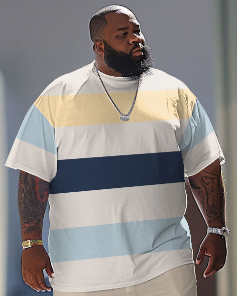 Embrace effortless style with this men’s two-piece set, designed for versatility and modern fashion. It features a striking color-block design with horizontal stripes in white, blue, and yellow. The refined design ensures multi-occasion functionality, making it a perfect go-to outfit for any laid-back or active day.