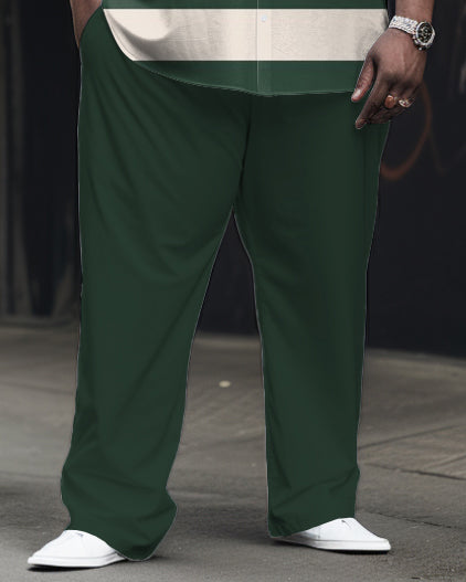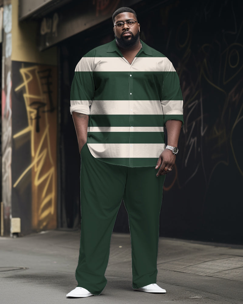 Men's Plus Size Simple Striped Long Sleeve Lapel Shirt 2-Piece Set