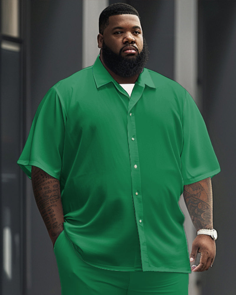 This big guy's pure green set is like a lush forest, bringing infinite vitality and vigor. The green pure color design reveals a low-key luxury. The loose version allows you to stretch freely in any activity. Whether it is leisure time or business occasions, this set can be easily controlled.