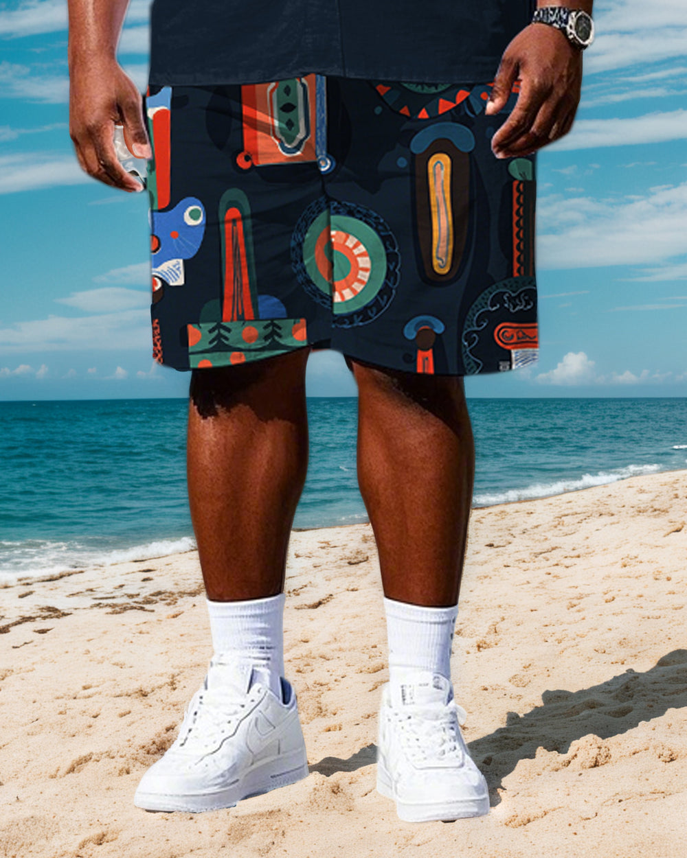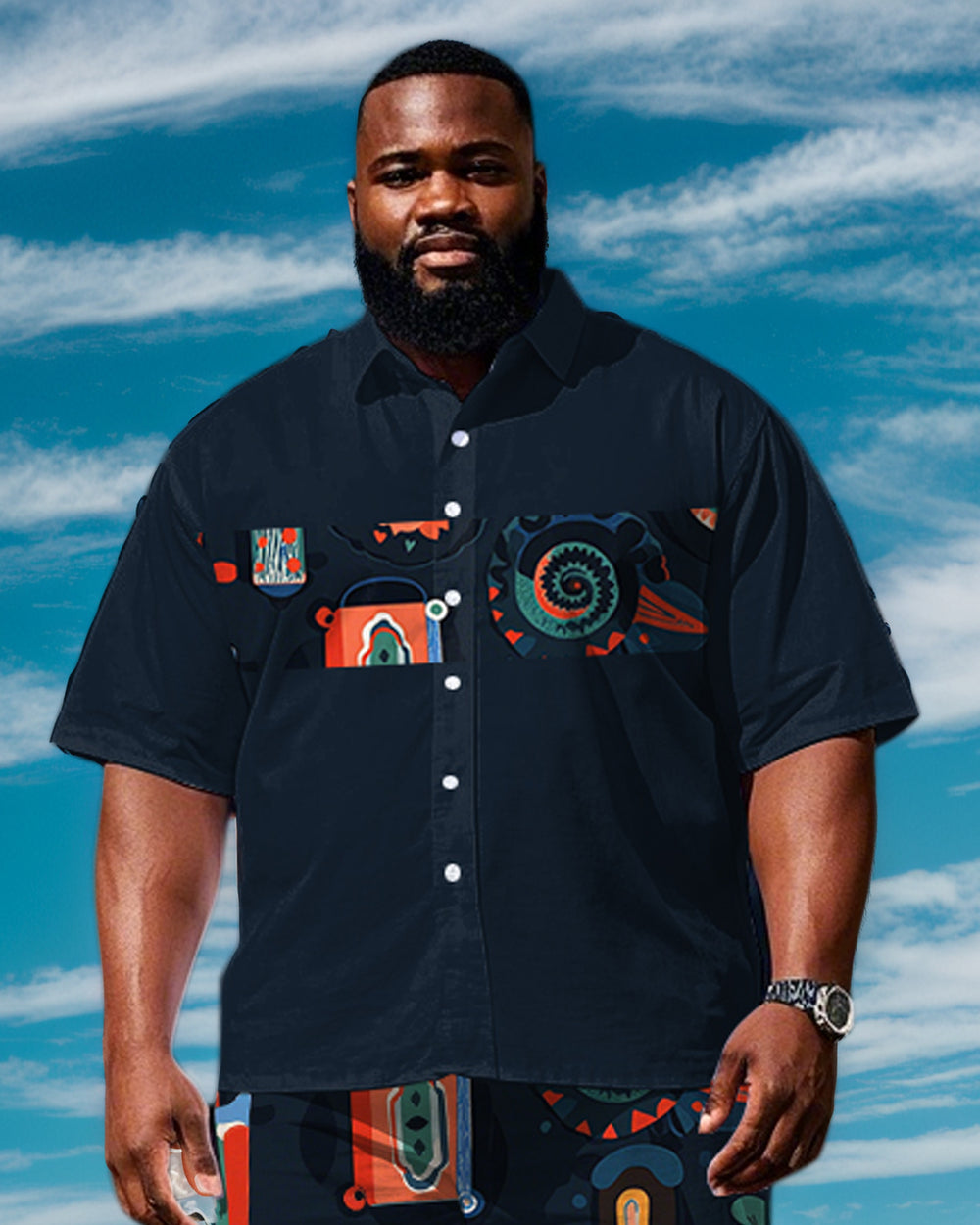 Men's Plus Size Splicing Stripe Funny Fashion Cartoon Pattern Printed Short Sleeve Shirt Shorts Set