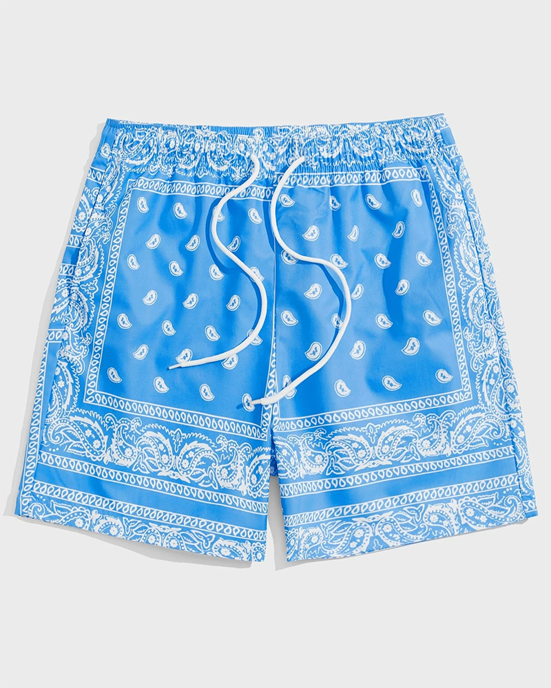 Step into the world of laid-back elegance with men’s blue shorts, adorned with a white paisley floral print. The relaxed silhouette and soft blue hue evoke a sense of carefree romance. The paisley pattern adds a touch of whimsy and nostalgia, making these shorts a standout piece in your wardrobe.