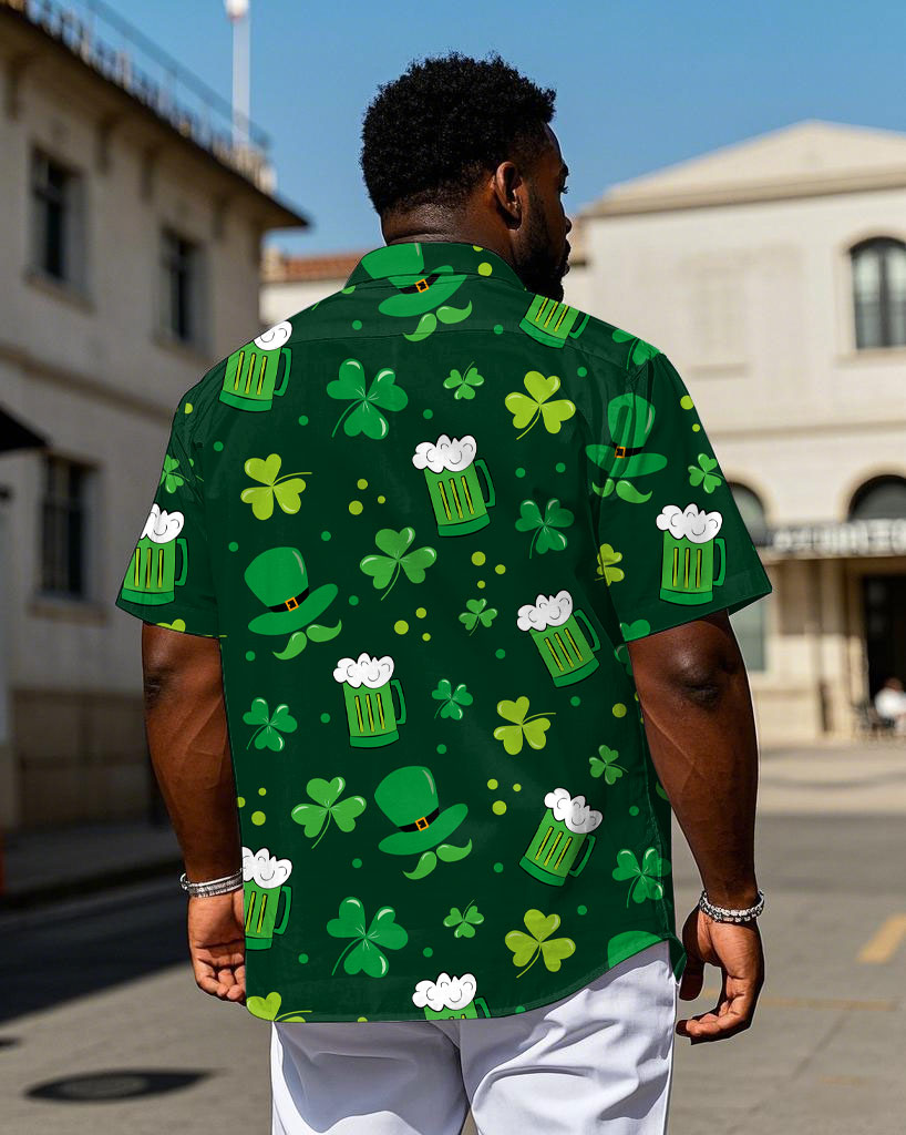 Men's Plus Size St. Patrick's Day Clover Short Sleeve Lapel Short Sleeve Shirt