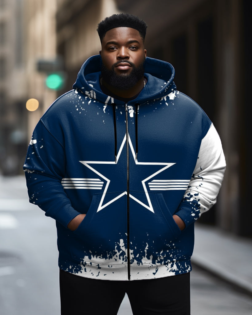 Want to stay cozy and stylish this fall and winter? look at this blue zip-up hoodie! Featuring a unique mix of star prints, stripes, and paint-splatter details, it brings a bold yet playful touch to your wardrobe. With both style and functionality, this hoodie delivers various possibilities to you.