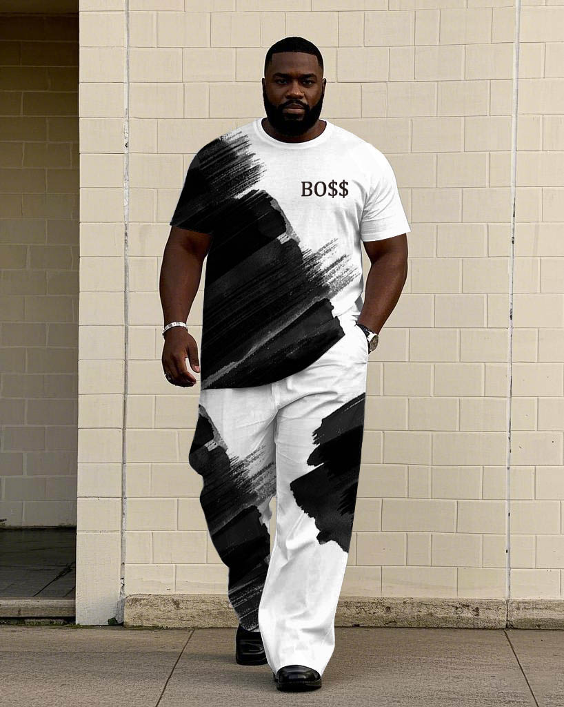 Men's Plus Size Street Brush "boss" Chest Printed Short Sleeve T-shirt Pants Suit