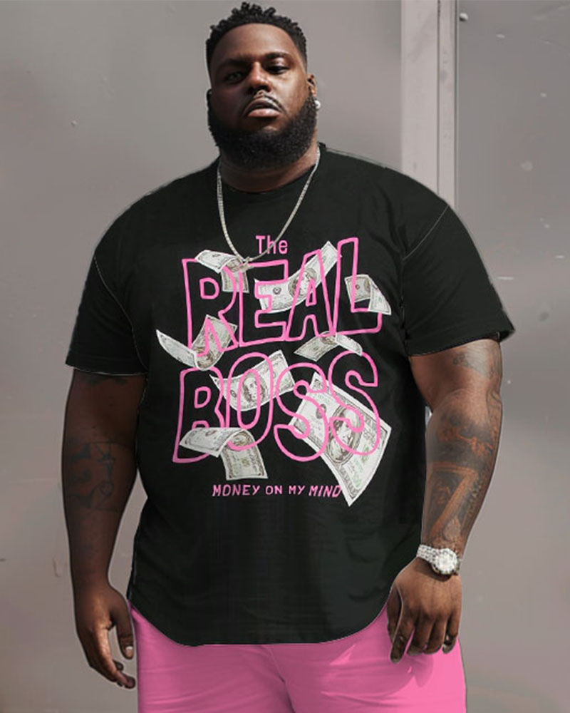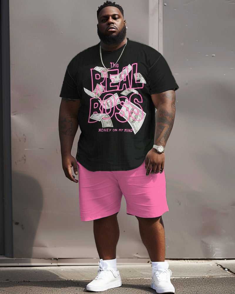 Men can also handle pink! This set is a perfect combination of cute and hip-hop elements. The letter print and cash pattern ignite your personality charm! The loose version design brings comfort, and the pink shorts add a bold street fashion touch to the whole outfit. From casual shoes to trendy sandals, it's easy to show your fashion style!