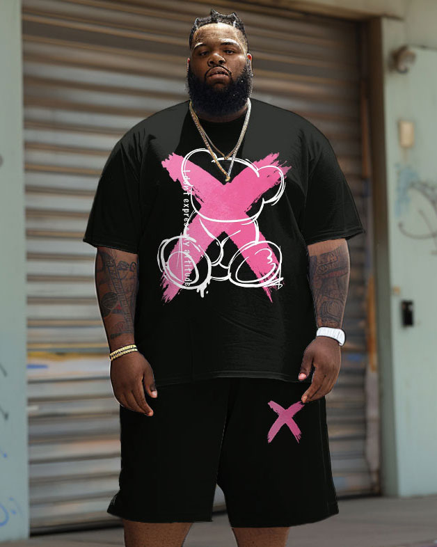 Let cartoon prints take your hip-hop style to the next level! This men's shorts set features bold cartoon bear graffiti and eye-catching pink letter - X, sparking instant street cred. The loose fit offers all-day comfort and fearless confidence, perfect for street fashion events or laid-back outings.