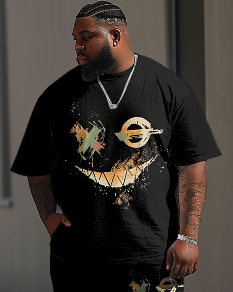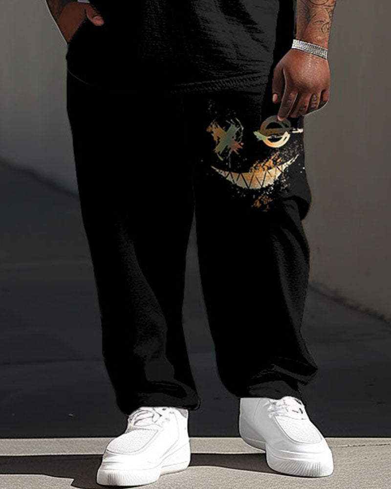 Men's Plus Size Street Casual Graffiti Expression Print T-Shirt Trousers Suit