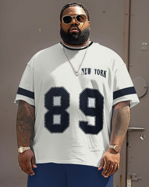 Men's Plus Size Street Casual New York Digital Print T-Shirt Shorts Suit
