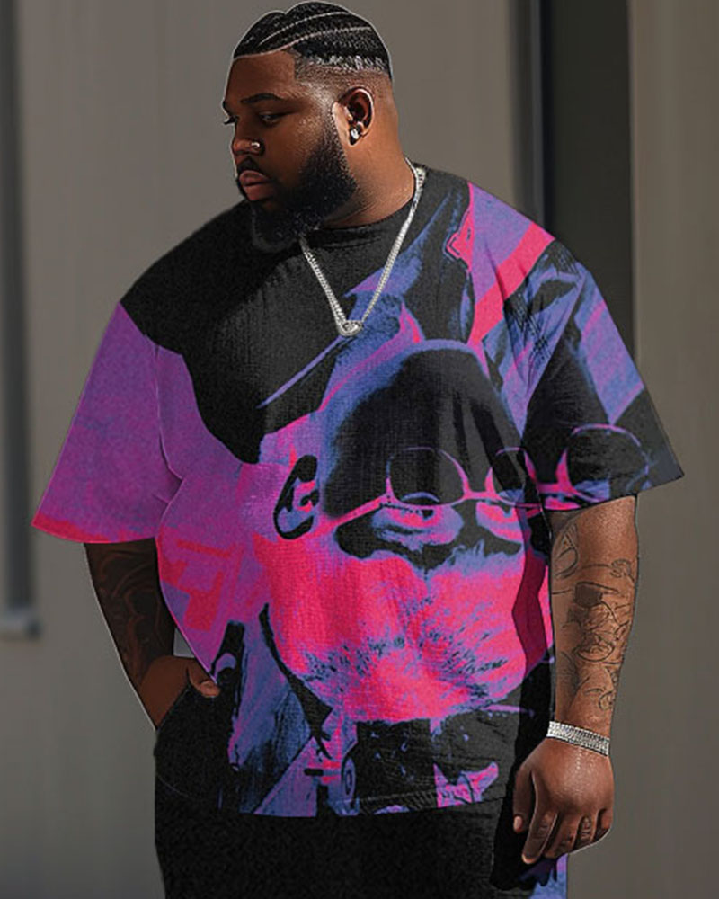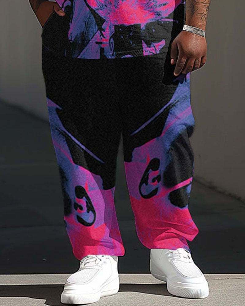 Men's Plus Size Street Casual Thermal Imaging Abstract Printed T-Shirt Trousers Suit