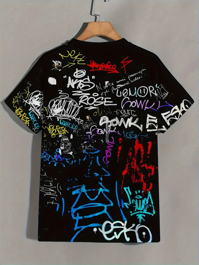 Men's Plus Size Street Fashion Abstract Graffiti Print Round Neck Short Sleeve T-Shirt