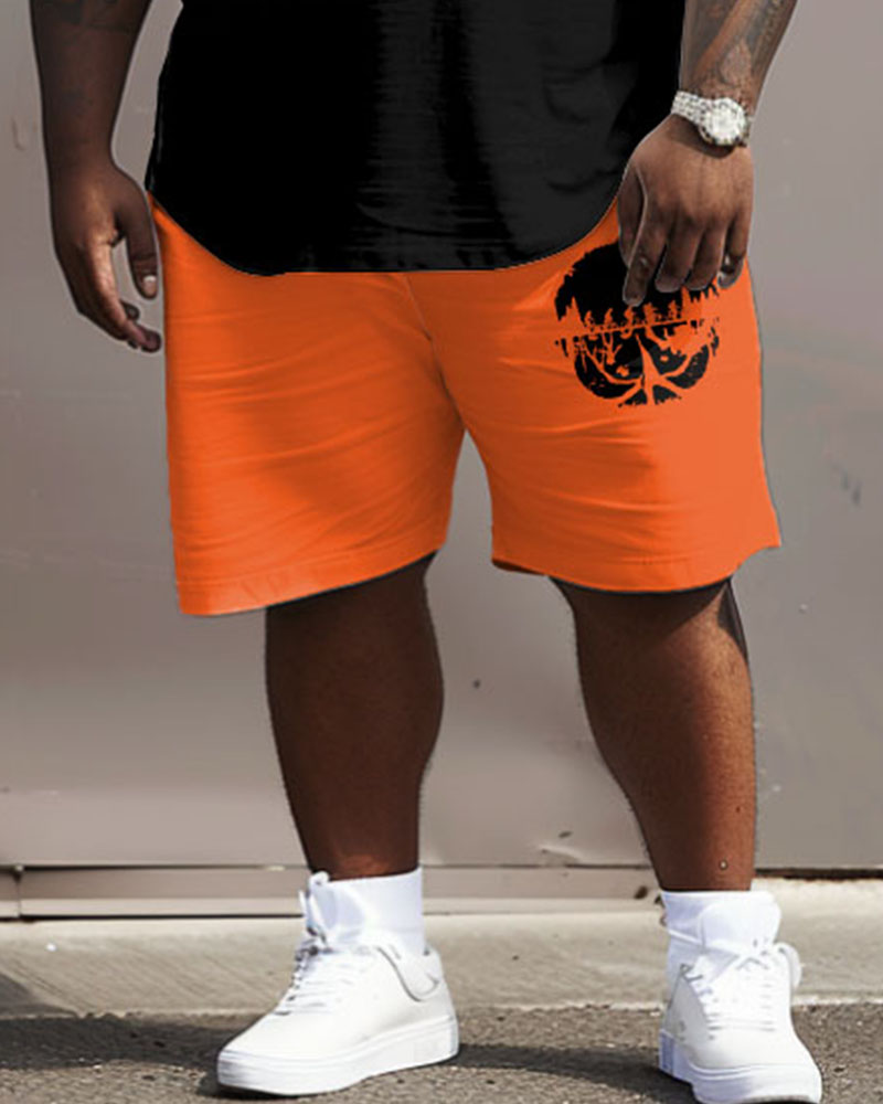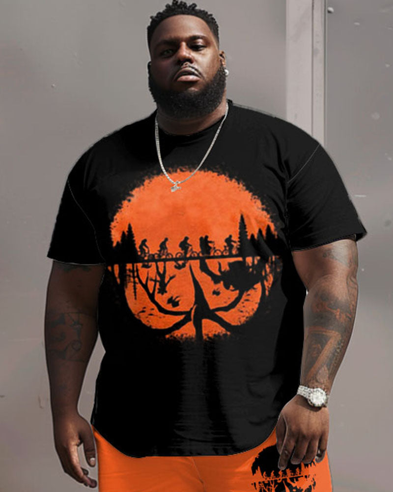 Men's Plus Size Street Fashion Abstract Sunset Print T-Shirt Shorts Suit