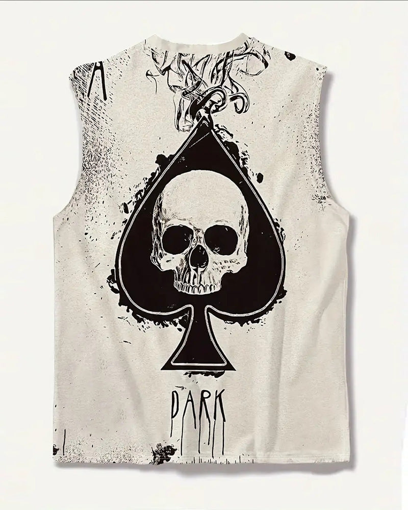 Men's Plus Size Street Fashion Beige Skull Print Round Neck Sleeveless Vest