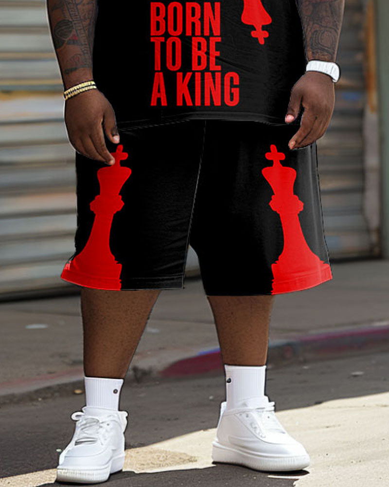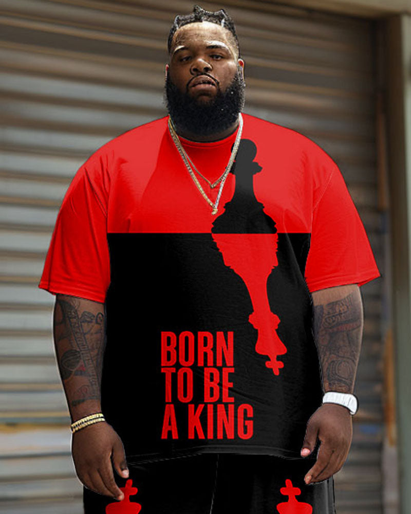 Men's Plus Size Street Fashion Colorblock King Alphabet Print T-Shirt Shorts Suit