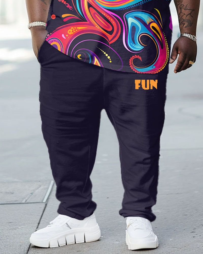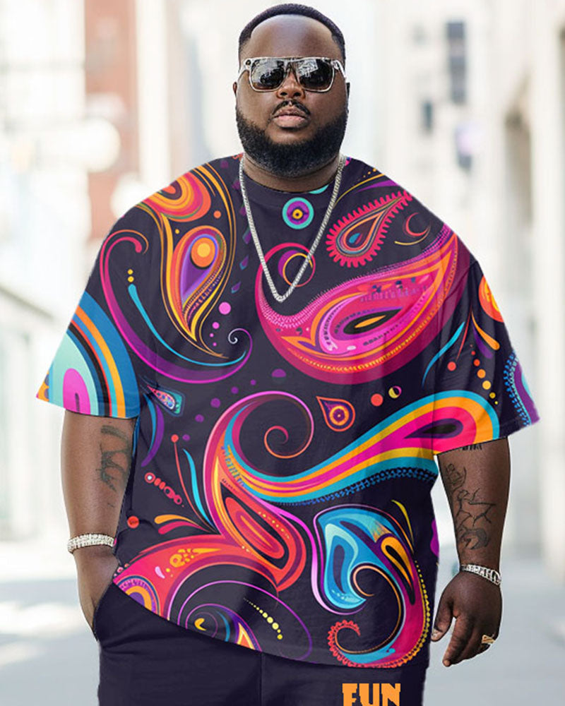 Embrace your unique style with this men's big & tall T-shirt set, featuring dreamy paisley prints for a touch of streetwear flair. The relaxed yet structured shoulder cut and breathable fabric keep you cool, while the solid black pants balance the bold top for versatile summer styling.