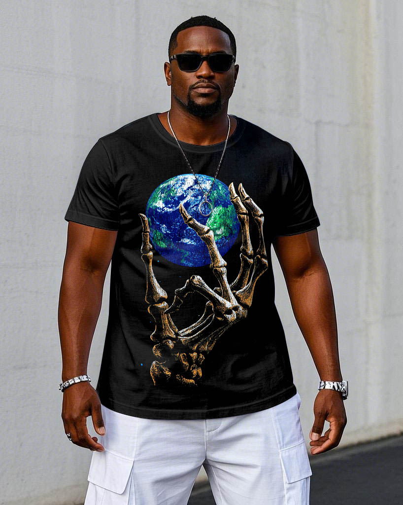 Men's Plus Size Street Fashion Domination Earth Pattern Print Short Sleeve T-Shirt
