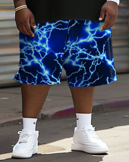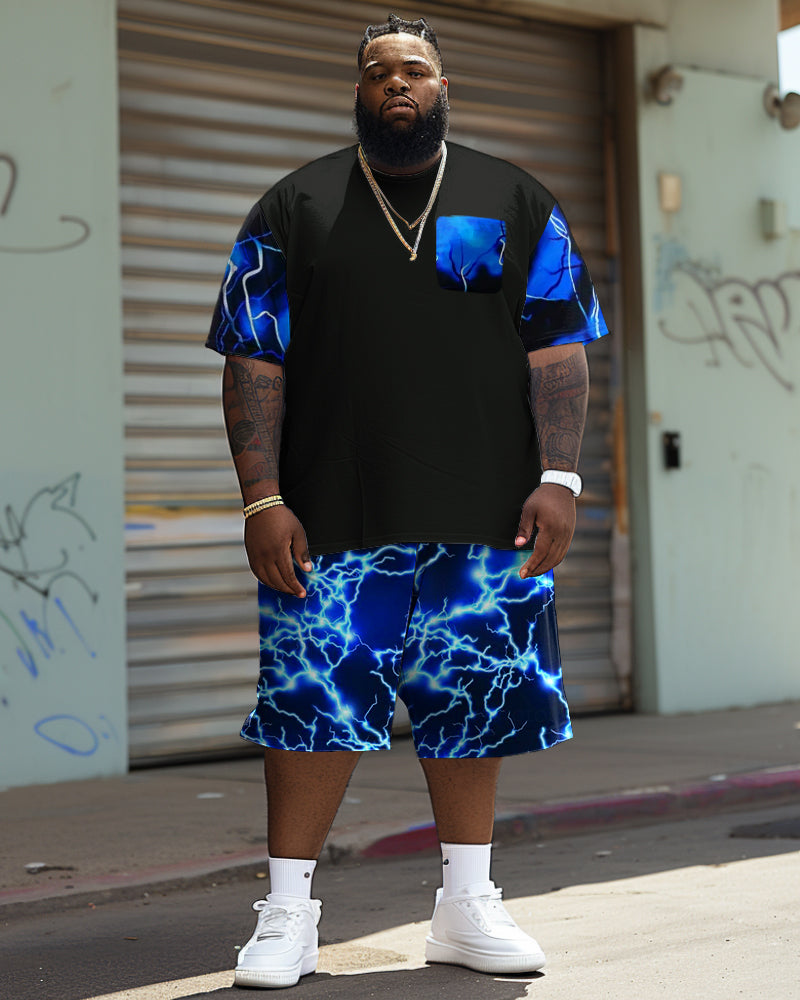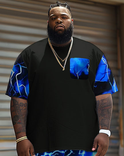 Experience the electric prints of the big guy's two-piece set and feel the charm of . This set features blue electric prints, showing vitality and personality. The loose fit ensures comfort for summer leisure activities. A variety of ways to wear it, allowing you to easily show your unique personality.