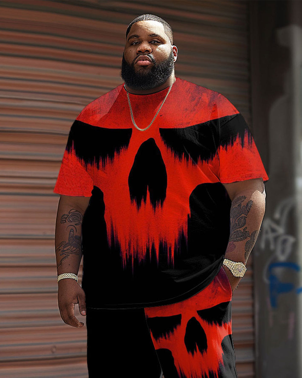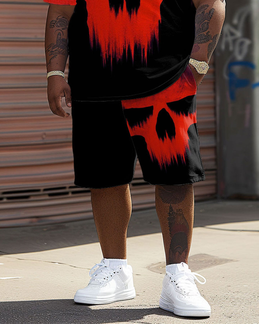 Can you imagine what a burning skull looks like? This big guy's two-piece set features a red graphic that looks like it's on fire. It creates a striking contrast with the flaming design, giving off a daring vibe. Ideal for streetwear, this outfit is all about showing your personality and standing out from the crowd.