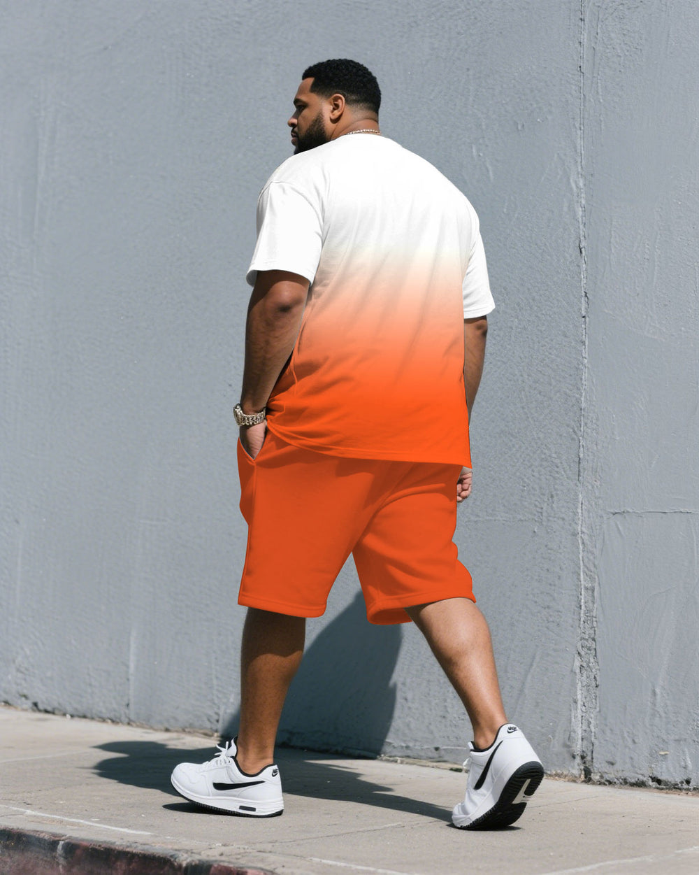 Men's Plus Size Street Fashion Orange Gradient Small Label Printed Round Neck Short Sleeve T-Shirt Shorts Suit