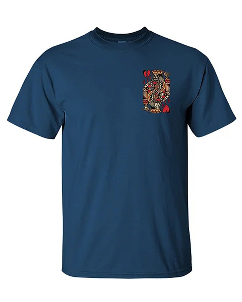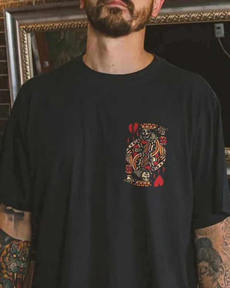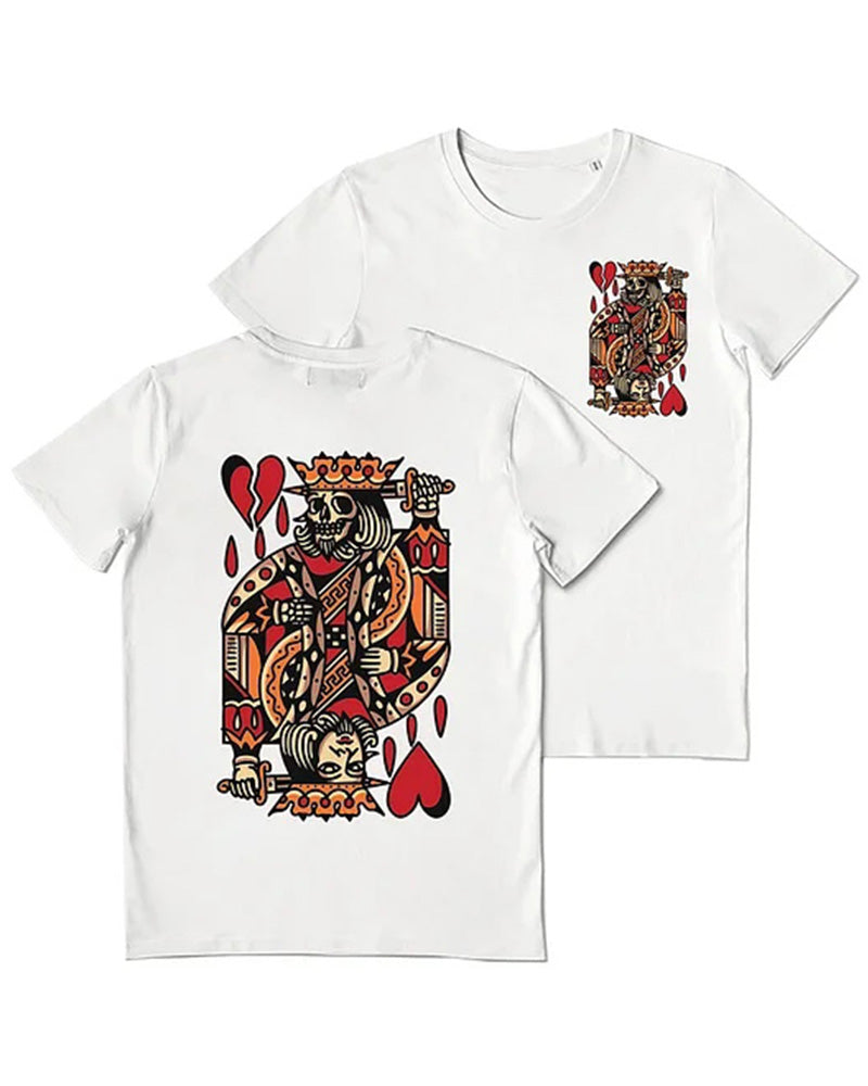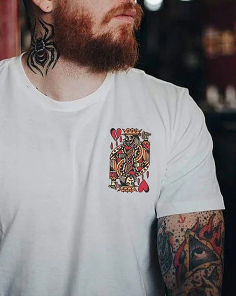 Men's Plus Size Street Fashion Playing Card Skull Print Round Neck Short Sleeve T-Shirt