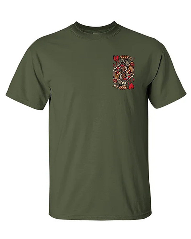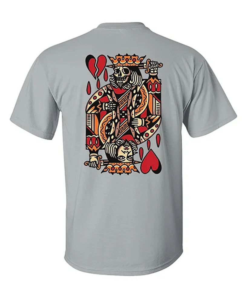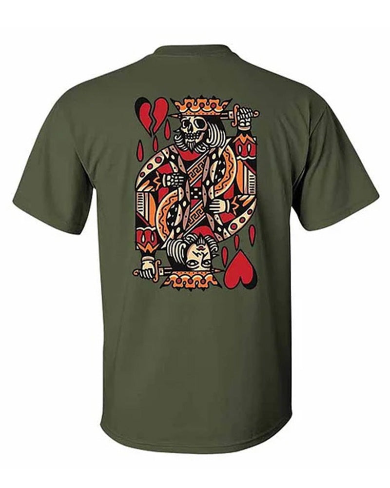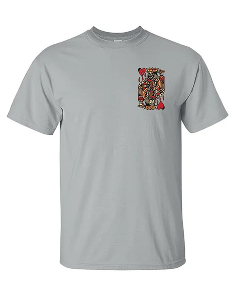 Men's Plus Size Street Fashion Playing Card Skull Print Round Neck Short Sleeve T-Shirt