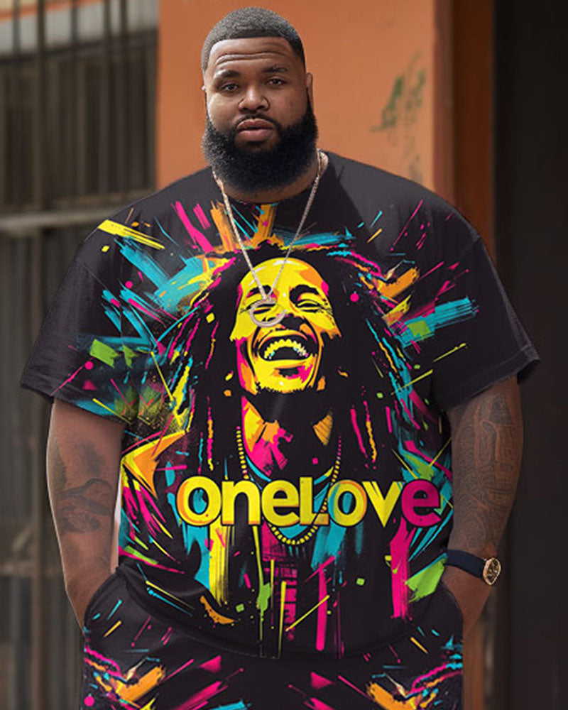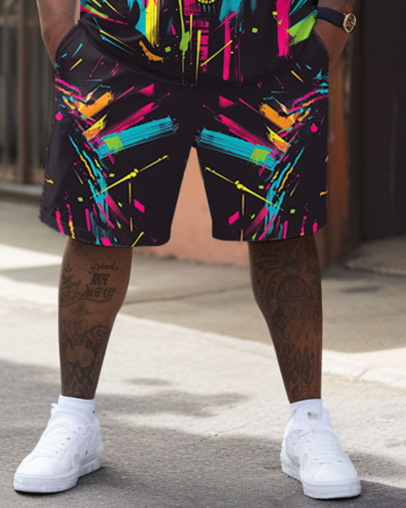 This set for big guys pays tribute to classic singers and shows unparalleled personality. The graffiti print depicts a laughing character, and the colorful bush painting style makes it vitalistic. Its loose version provides comfort. This set will make you the focus of everyone's attention and exude dazzling charm!