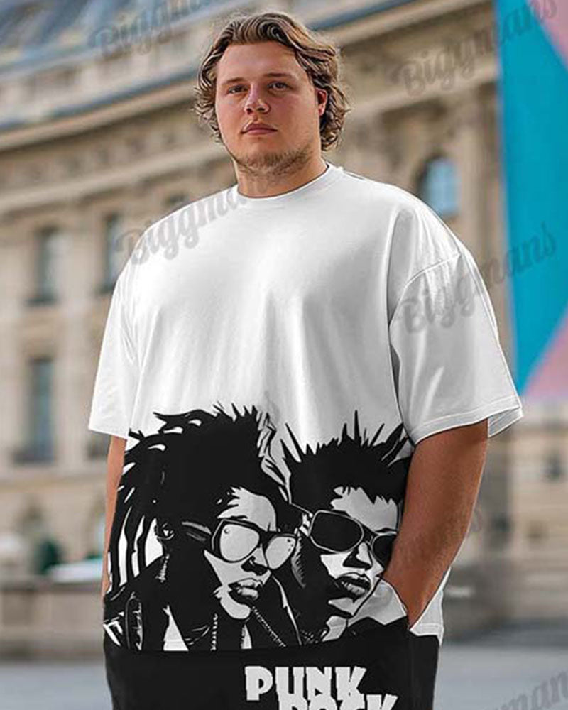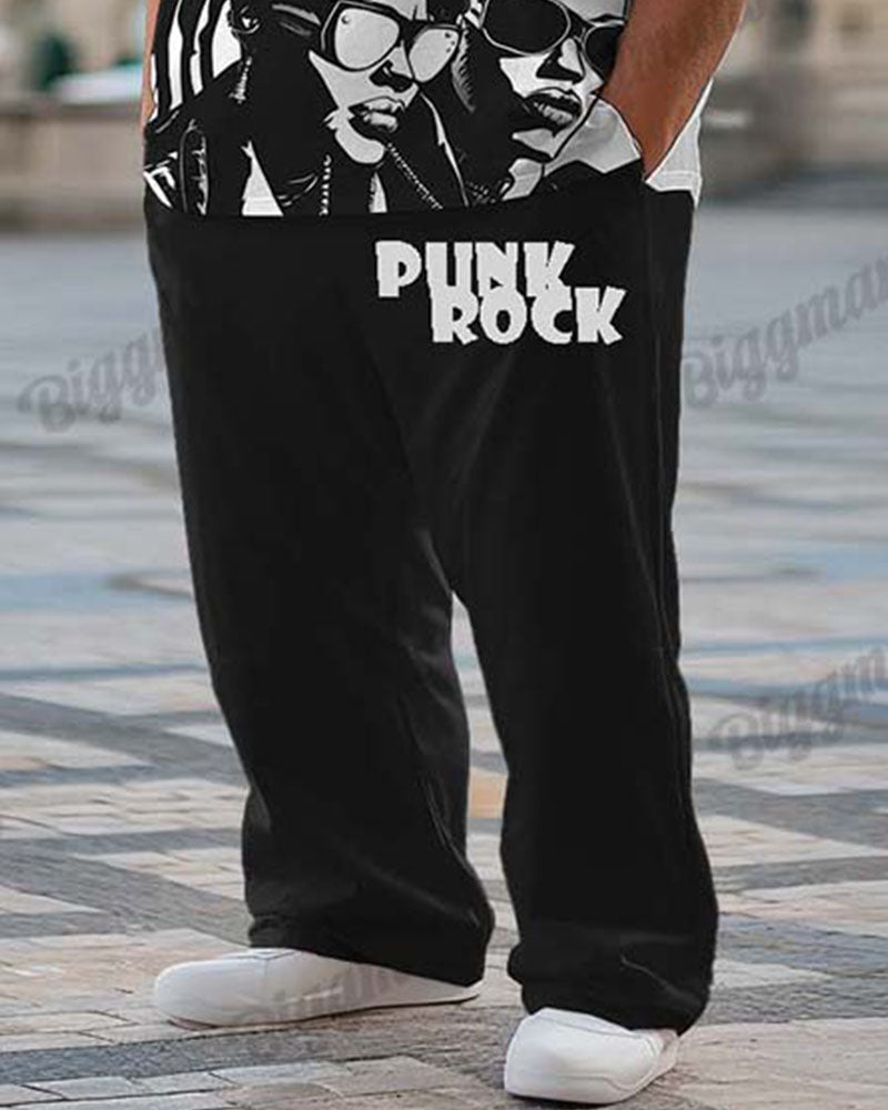 Men's Plus Size Street Fashion Punk Rock Graffiti Print T-Shirt Trousers Suit