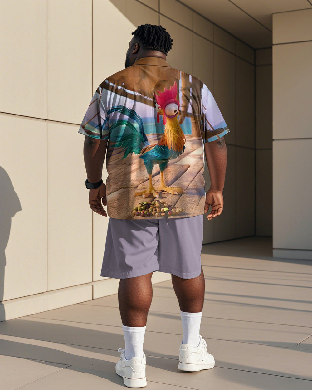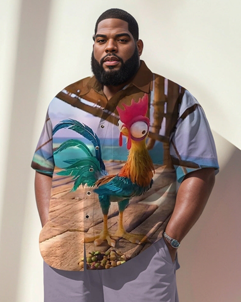 This men's plus size suit is designed for you who pursue individuality. The purple color highlights the unique charm and the street fashion style is casual and unrestrained. The fun chick print is childlike and adds flair to the outfit. The shirt and shorts combination is comfortable and easy to move around in for everyday and casual occasions, making it easy to show off your trendy attitude.