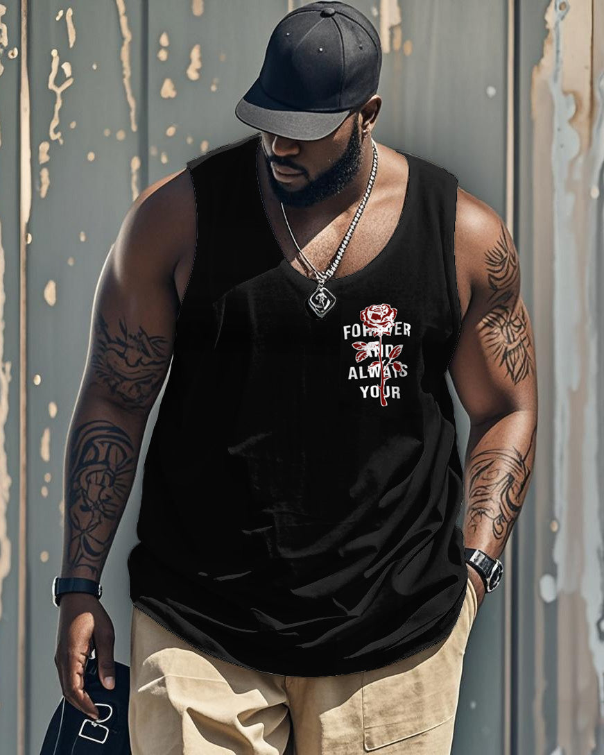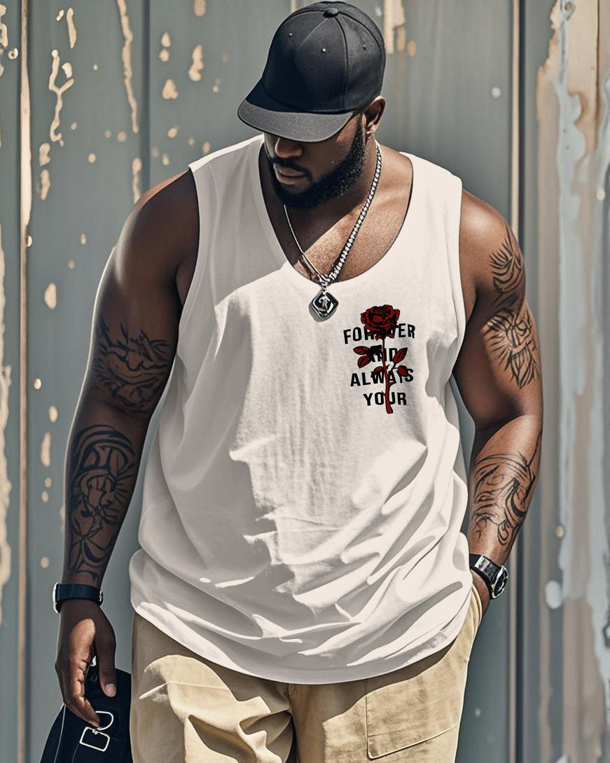 Men's Plus Size Street Fashion Rose Alphabet Print Round Neck Sleeveless Vest