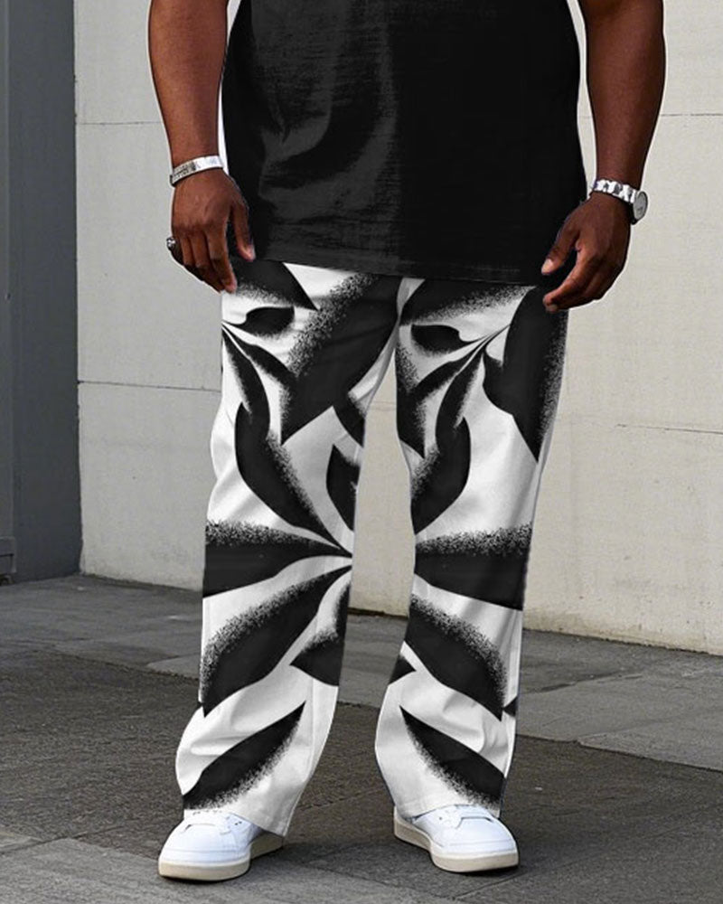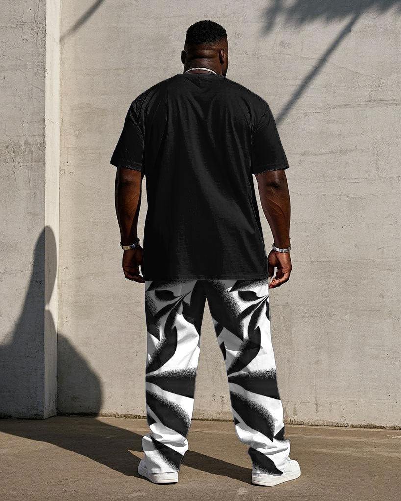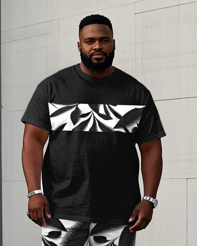 Men's Plus Size Street Fashion Silhouette Stitching Short Sleeve T-Shirt Trousers Suit