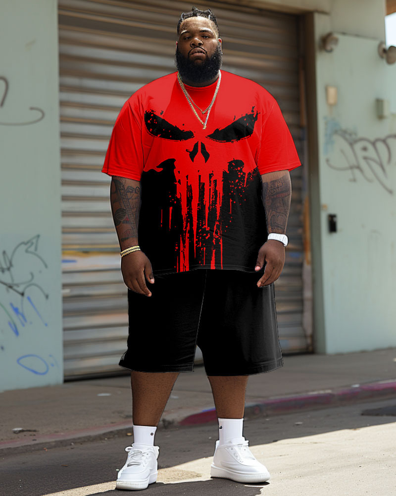 Interested in skulls? Try this skull big guy's two-piece set! Featuring blood, the appropriate red ink design makes the pattern more innovative. The contrast between red and black blocks creates a sense of fear. This set is very suitable for hip-hop style, allowing you to enjoy the unique street culture.