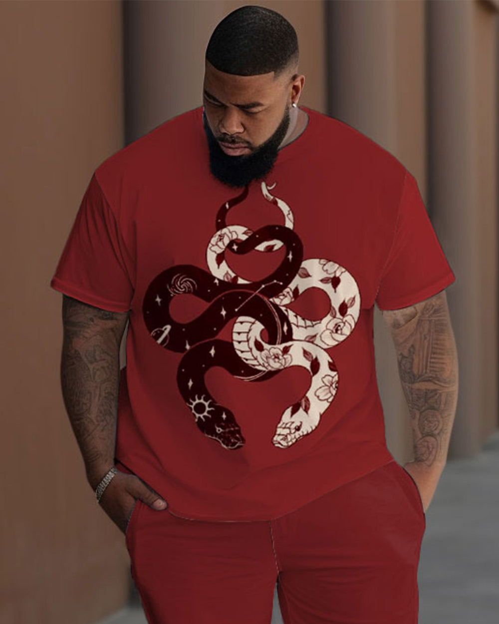 Men's Plus Size Street Fashion Snake Print T-Shirt Trousers Suit