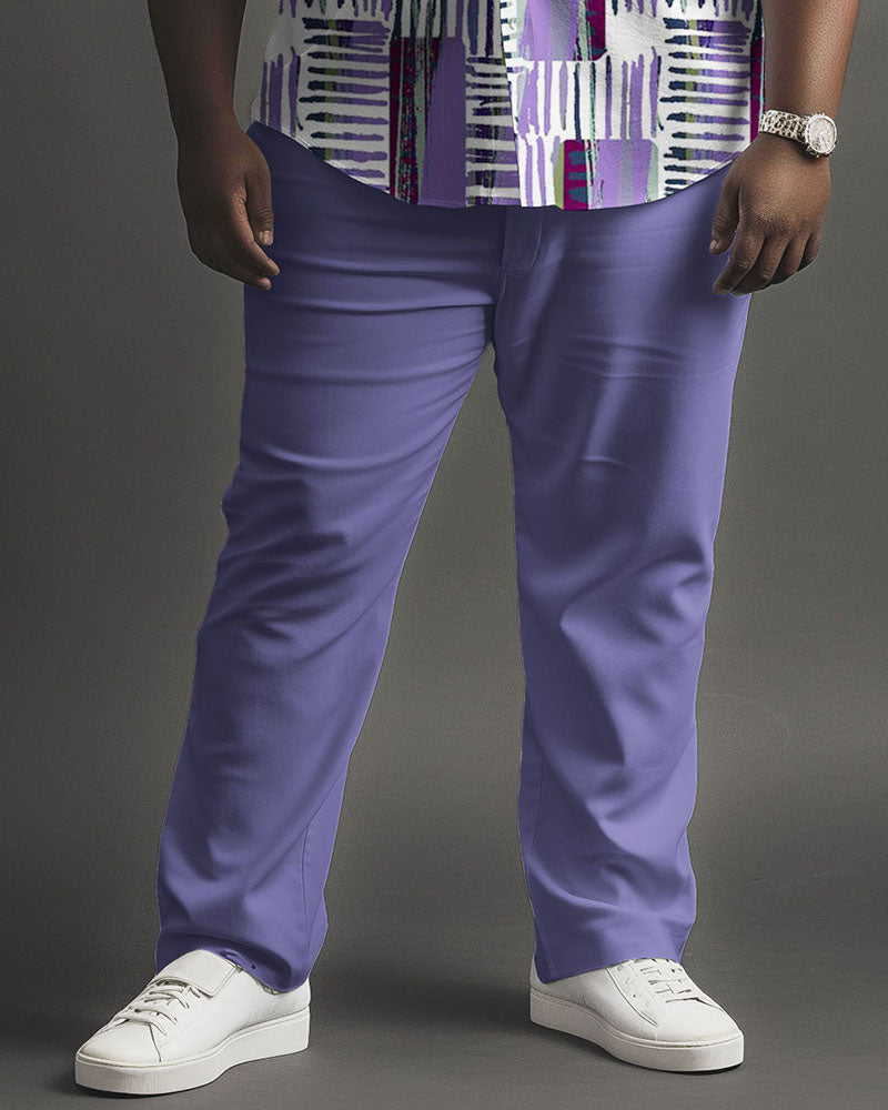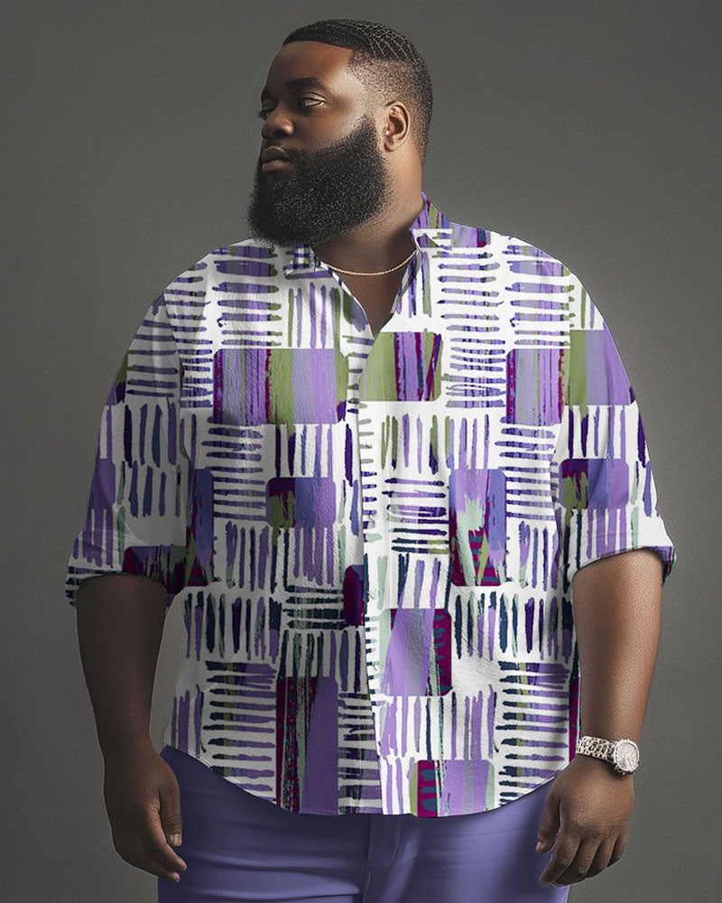 Men's Plus Size Street Fashion Stitching Graffiti Print Long Sleeve Shirt Trousers Suit